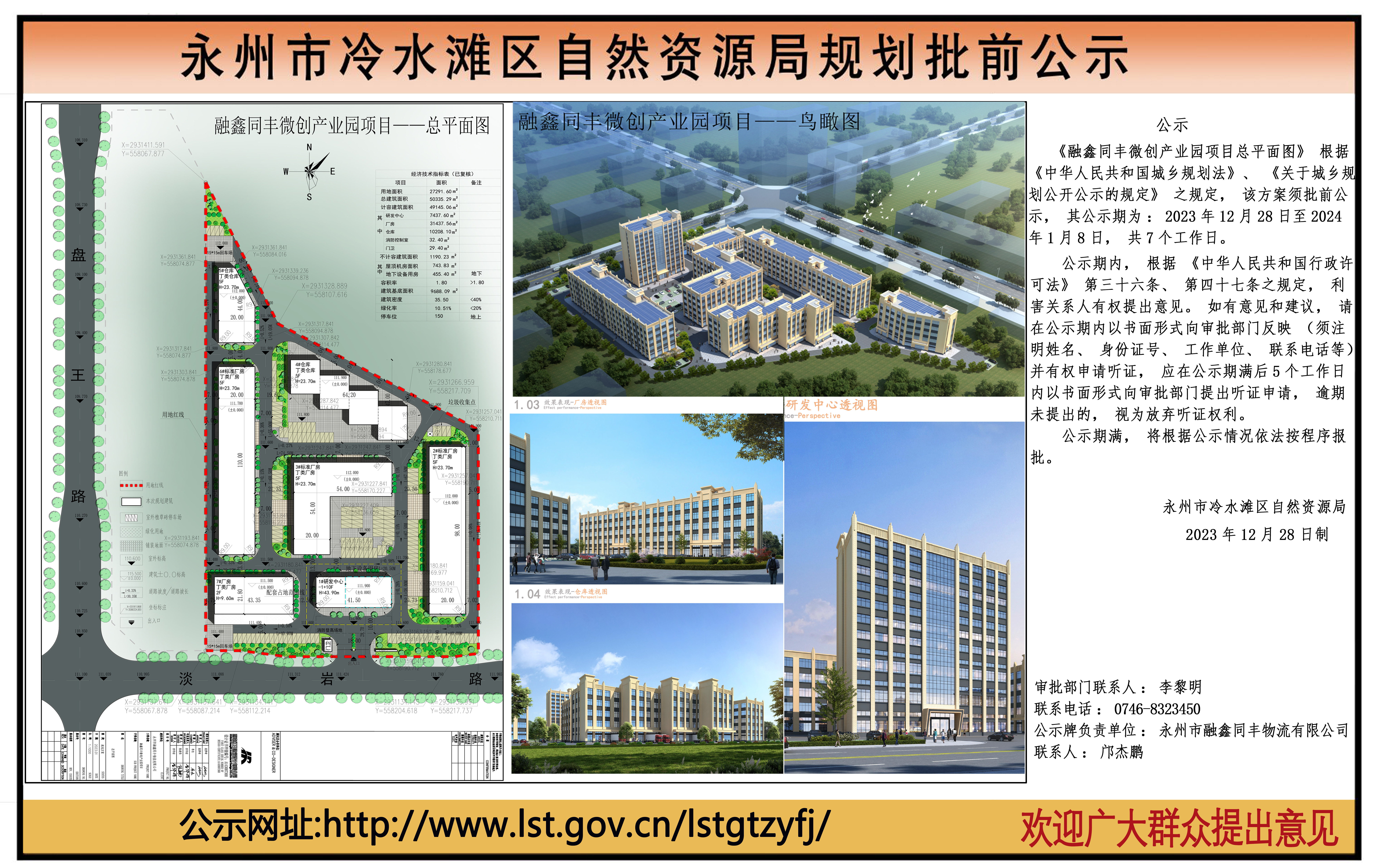 永州市冷水滩区自然资源局规划批前公示 《融鑫同丰微创产业园项目总平面图》