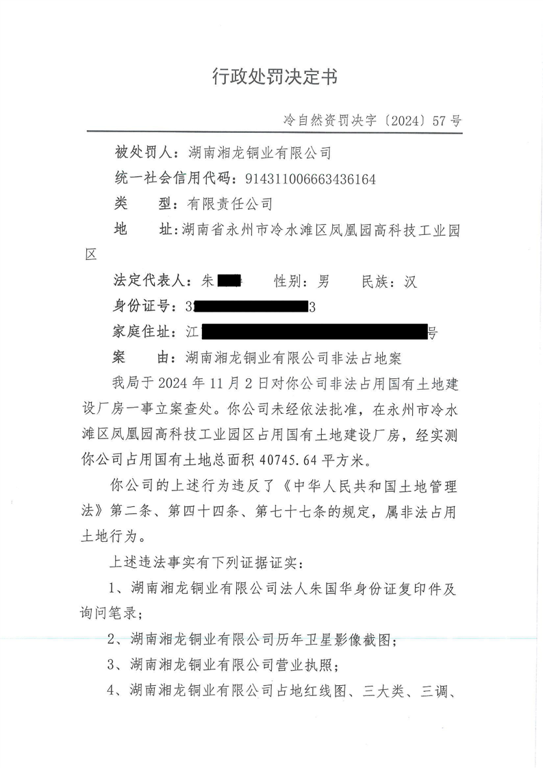 行政处罚决定书 冷自然资罚决字【2024】57号
