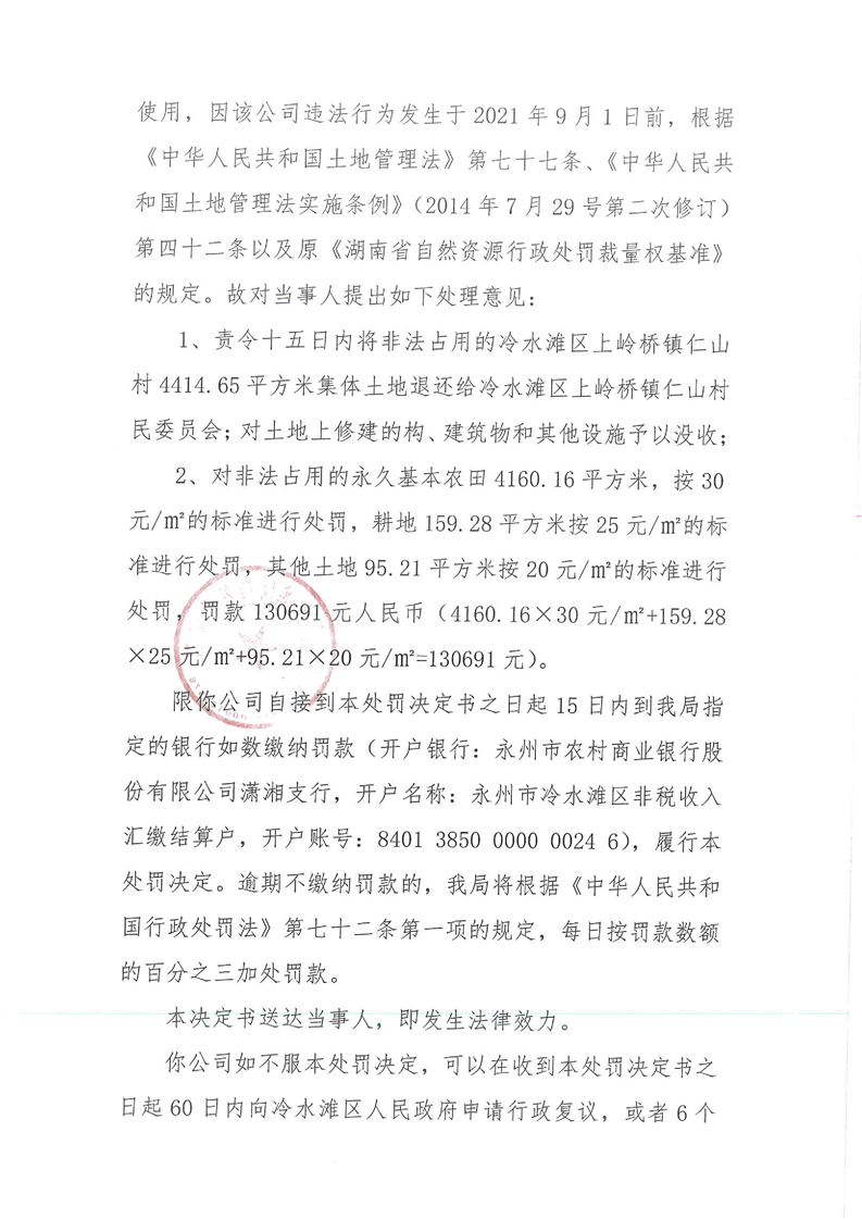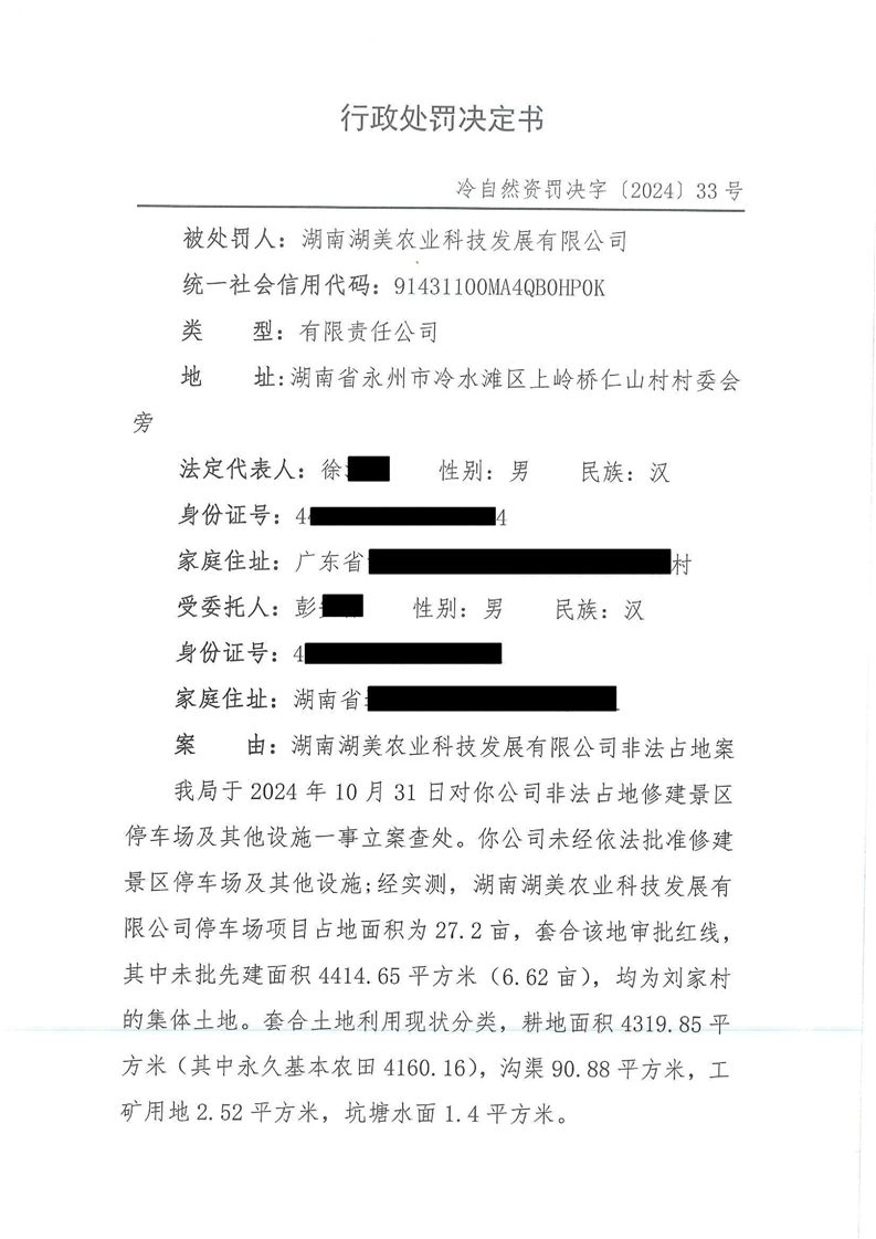 行政处罚决定书 冷自然资罚决字{2024}33号