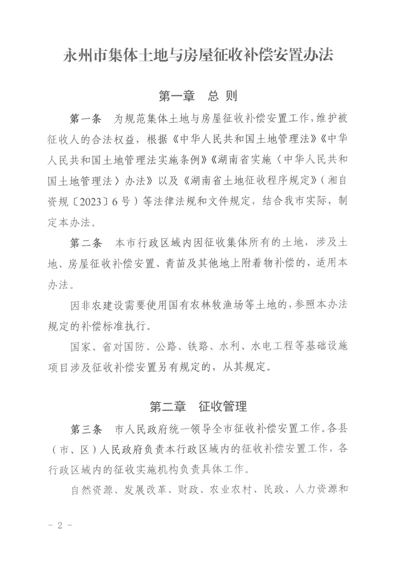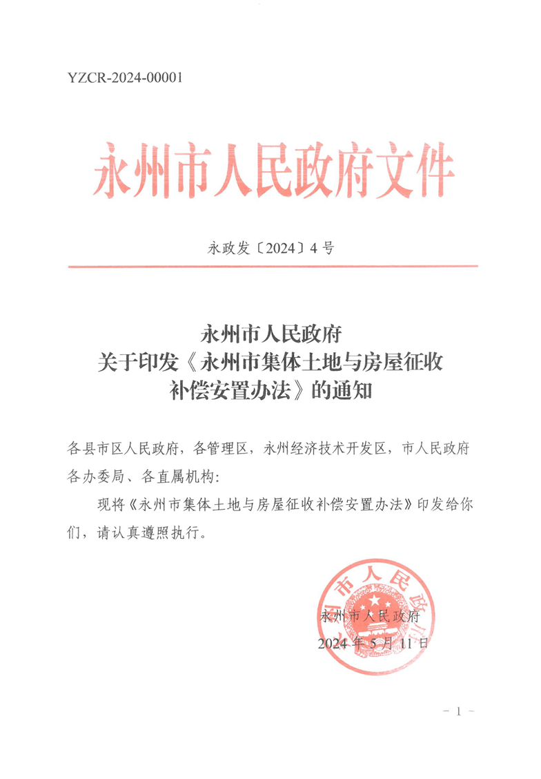 永州市人民政府关于印发《永州市集体土地与房屋征收补偿安置办法》的通知