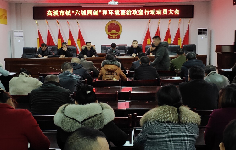 12月23日上午,冷水滩区高溪市镇在镇政府四楼会议室召开“六城同创”和环境整治攻坚行动动员大会,镇政府所有干部职工、各村(社区)主干、镇直单位负责人共80余人参加会议。