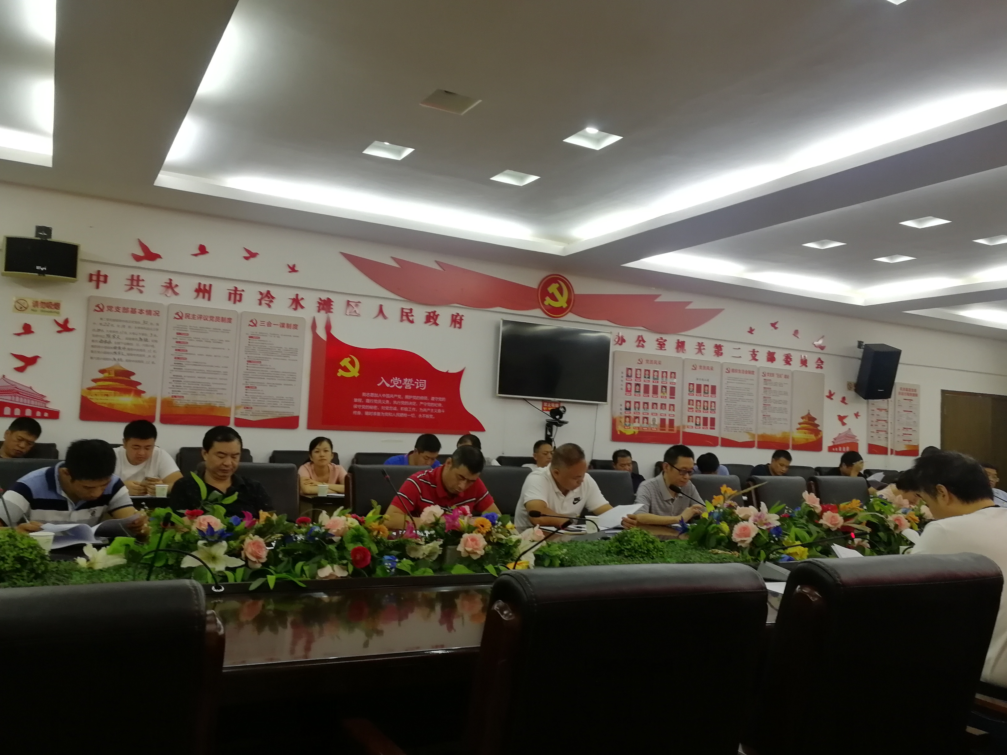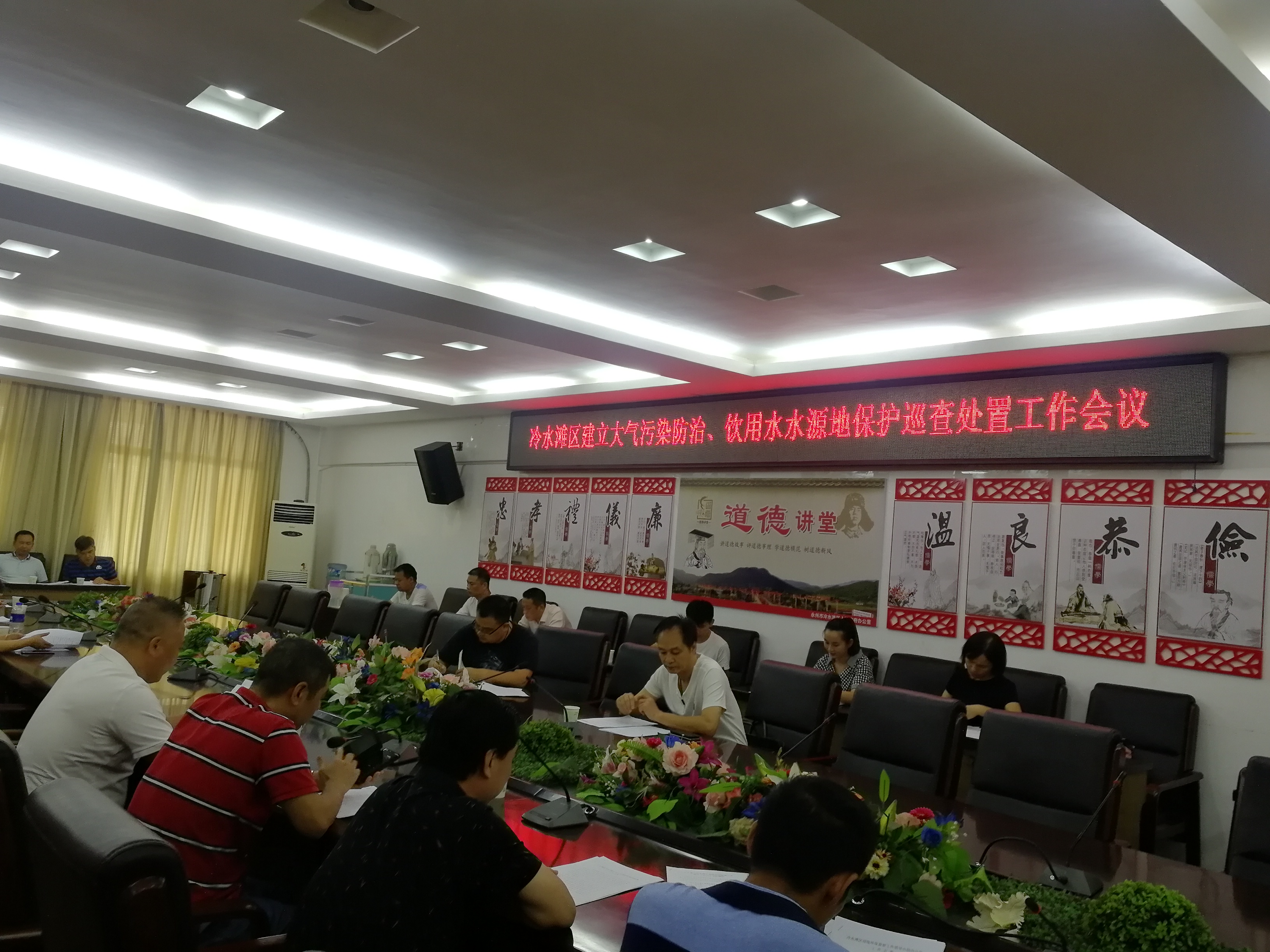会上,组织各部门学习讨论了《冷水滩区饮用水水源地联动巡查工作方案》、《冷水滩区中心城区大气污染防治联动巡查工作方案》、《关于成立冷水滩区迎接环保督察工作领导小组办公室的通知》、《冷水滩区迎接环保督察工作领导小组办公室工作方案》等相关文件。