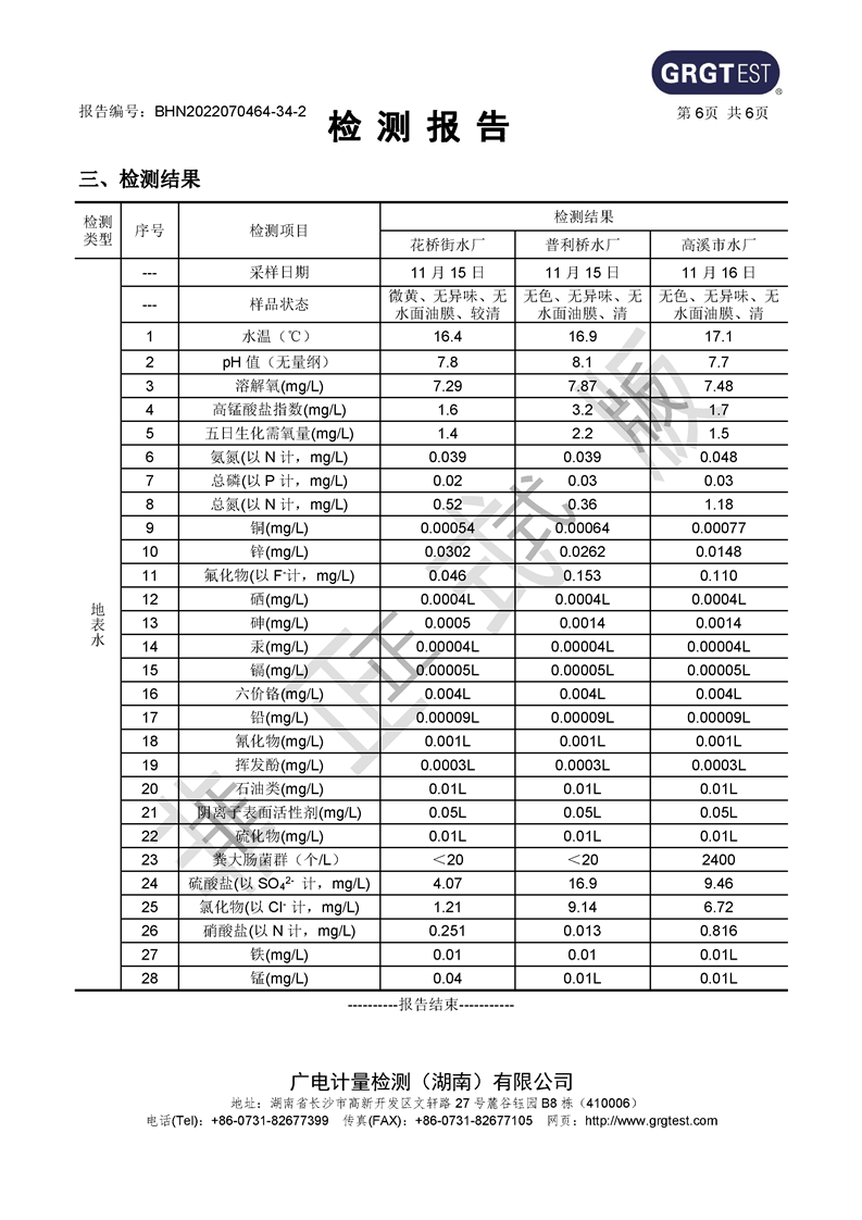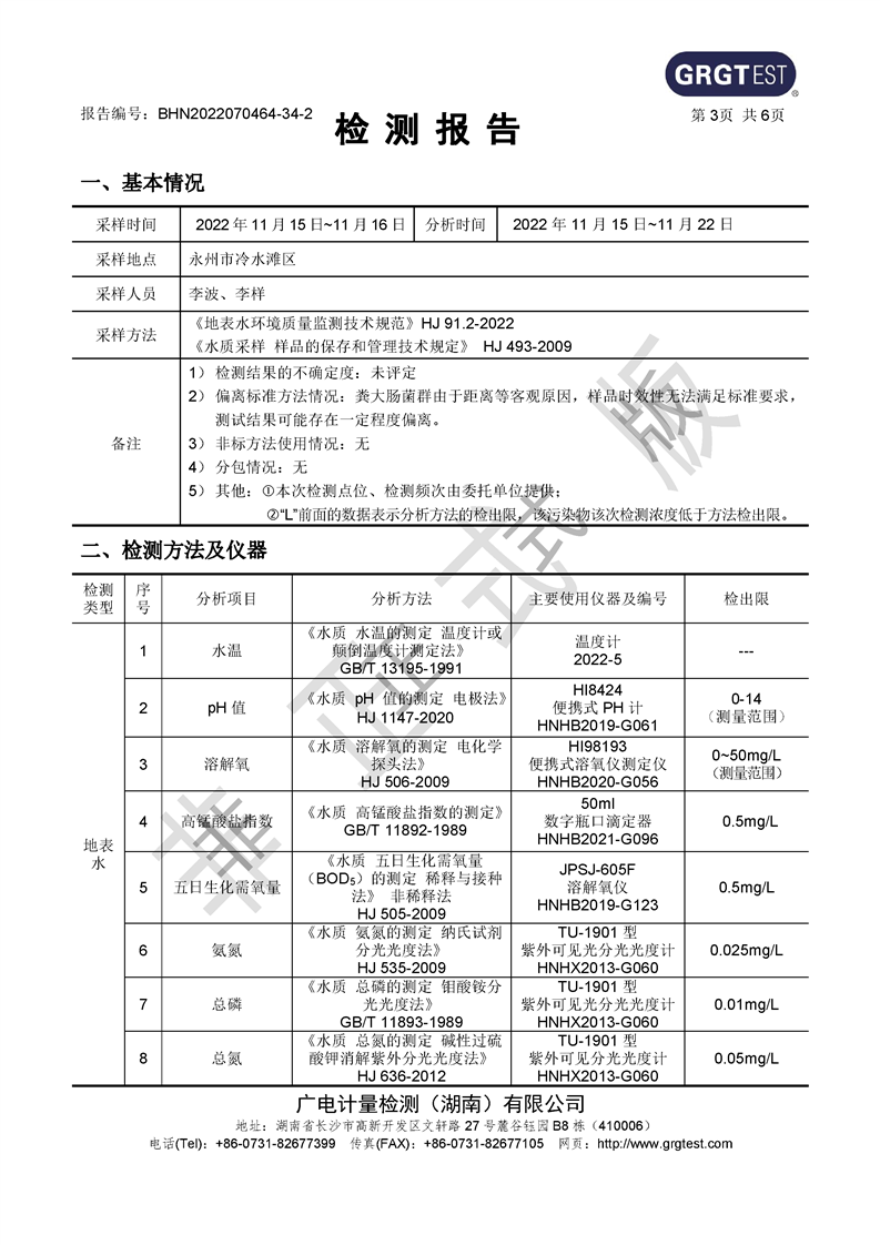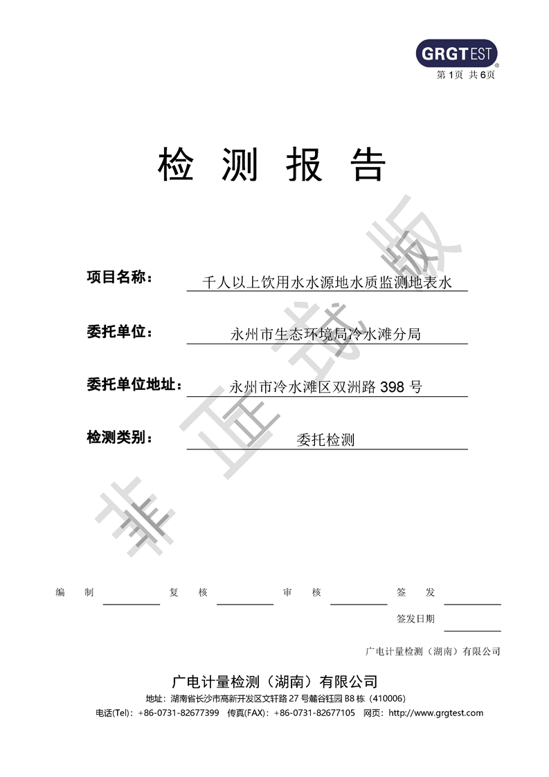 冷水滩乡镇千人以上饮用水水源地四季度水质监测报告