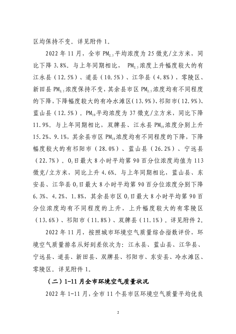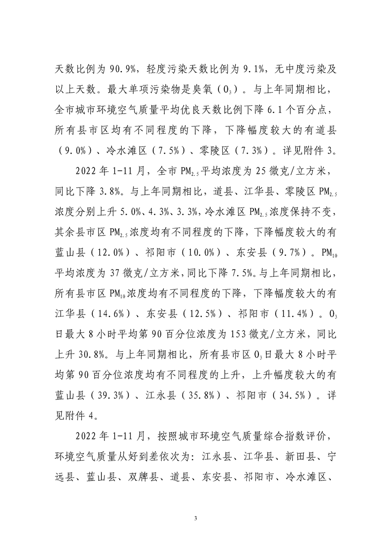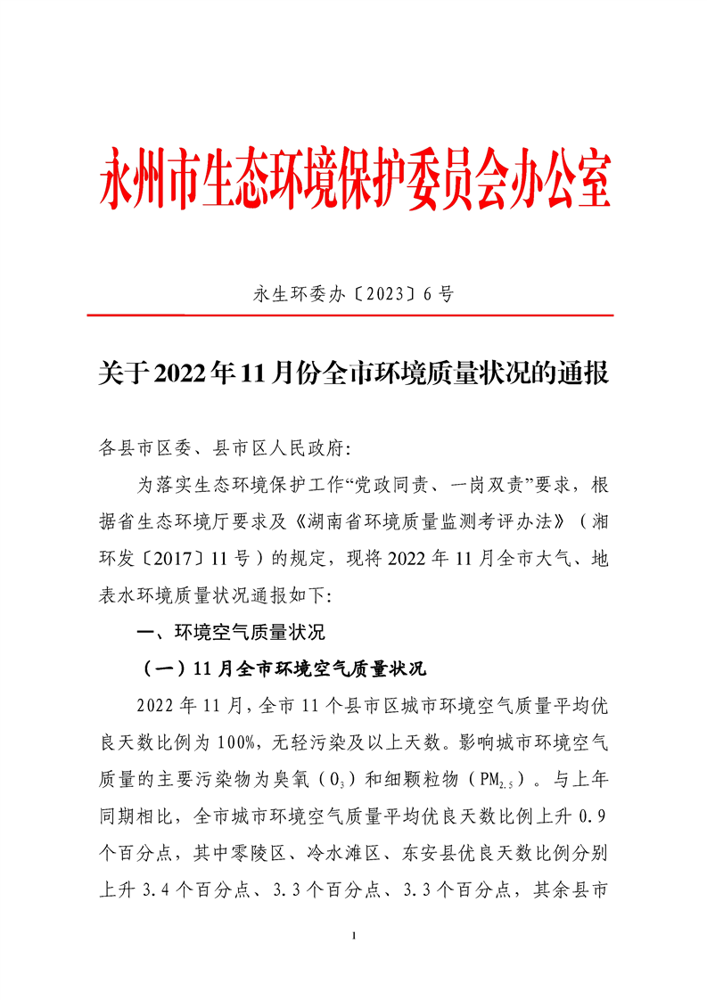 关于2022年全市环境质量状况的通报