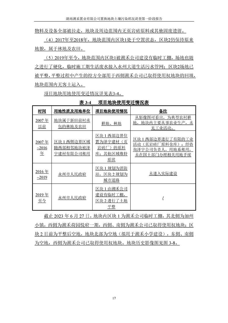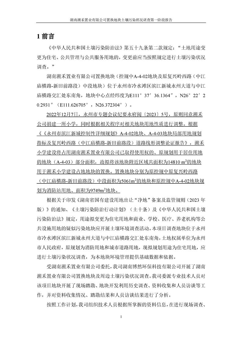 溯禾置换地块第一阶段土壤污染状况调查报告