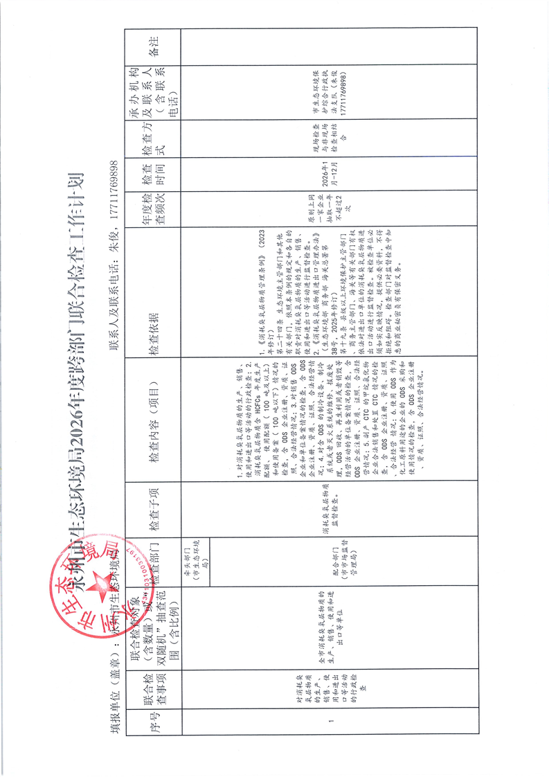 永州市生态环境局2026年度跨部门联合检查工作计划。