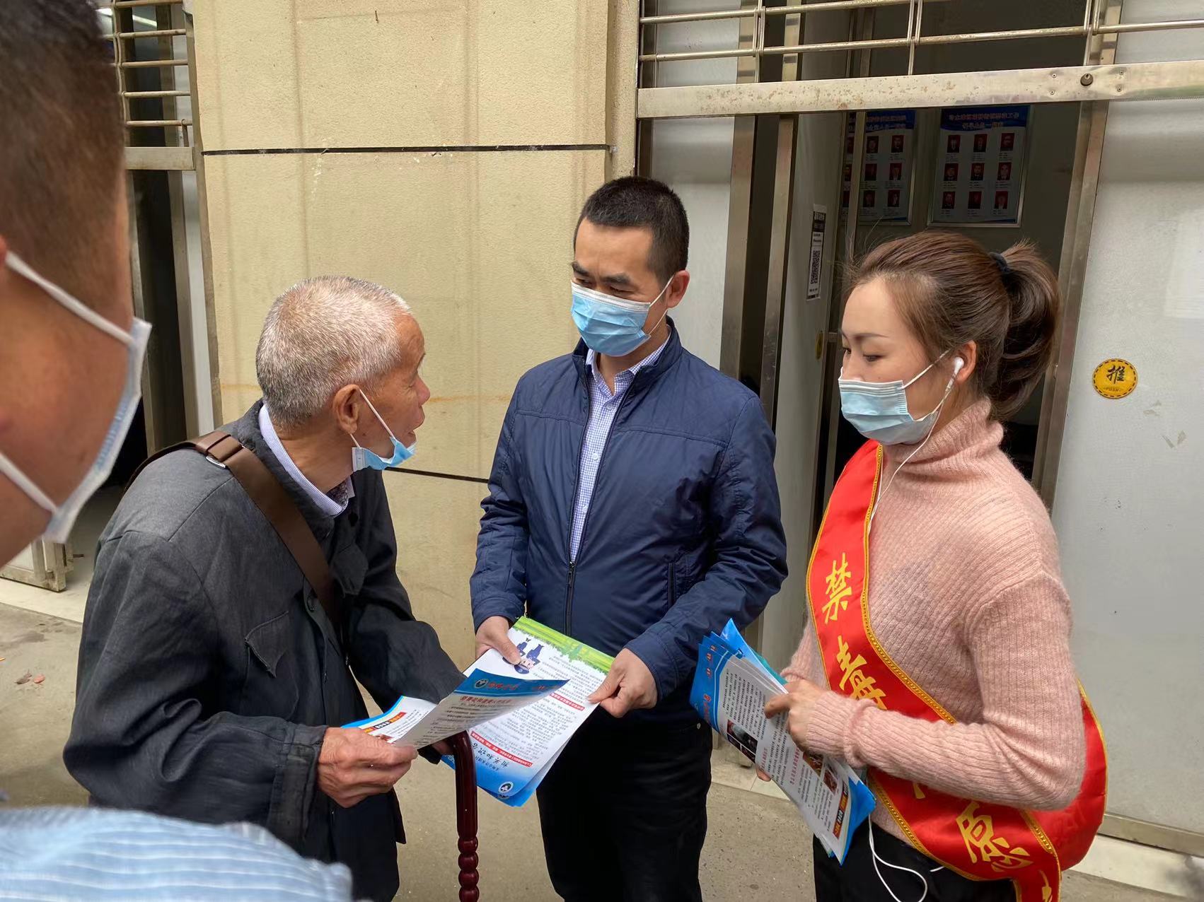 为全力做好禁毒宣传工作,进一步增强全民禁毒意识、传播禁毒理念,志愿者们通过悬挂横幅、派发禁毒宣传资料和面对面讲解等多种形式,为群众讲解毒品的危害性和违法性,让群众更深入了解毒品对人体健康的危害。同时提醒辖区居民注意在疫情防控期间做好自身防护,做到“禁毒”、“防疫”两不误。