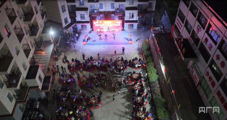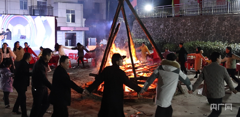 村民手拉手围着篝火载歌载舞(央广网发 张潇悦 摄)