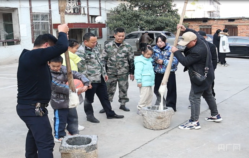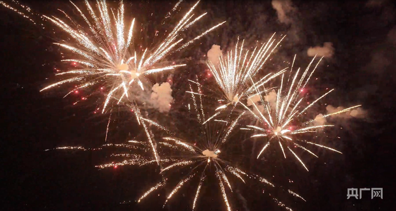 现场,绚丽的烟花点亮了夜空,村民们手拉手围着篝火载歌载舞,共同喜迎新年的到来。晚会前,村民们体验了当地传统的打糍粑、烤全羊等民俗活动,大家围坐在圆桌旁,一起品糍粑、吃全羊,感受乡村浓浓的年味。