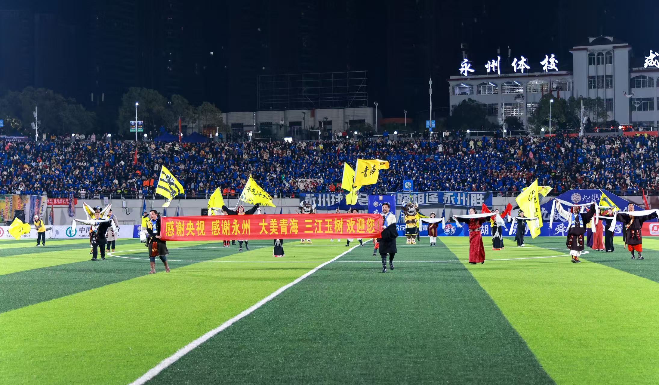 19时35分,决赛正式开始,永州体育场座无虚席、气氛热烈,16020名球迷到场观赛。决赛从一开始便进入高节奏对抗,主场作战的永州队试图抢占先机,但湛江队凭借娴熟技术与流畅配合始终掌控场上节奏。比赛第37分钟,湛江队6号陶智略抓住机会门前推射破门,湛江队1:0领先永州队。仅两分钟后,湛江队禁区外远射造成门将脱手,陶智略机敏补射梅开二度,将比分扩大为2:0。