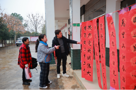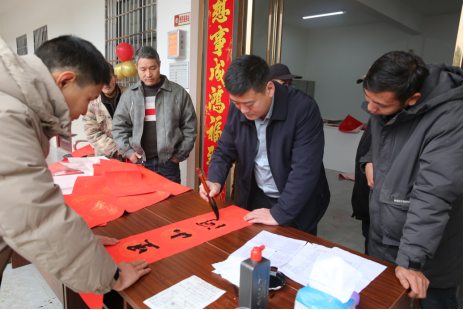 翰墨书香迎新春,暖心影像聚团圆。新春前夕,冷水滩区黄阳司镇处处洋溢着喜庆祥和的节日气氛。在镇党委的精心组织和安排下,一场以“迎新春·送祝福”为主题的文化惠民活动在大陂岩村、五峰岭村、狮子岭村同步展开。镇党委书记充分发挥“头雁”作用,带头深入基层、挥毫泼墨,将党组织的关怀与温暖通过翰墨书香和暖心影像送到百姓身边,以党建引领为乡村春节增添了别样的“红色年味”。