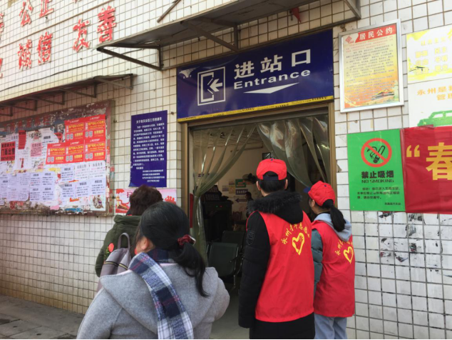 1月22日上午,冷水滩区春运办、团区委联合区总工会、区直单位志愿者、永州综合职专志愿者、永州市永爱义工协会等单位在凤凰园汽车站正式拉开了2019年春运“暖冬行动”的序幕,开展了秩序维护、引导咨询、便民利民、帮扶重点旅客、交通安全劝导、应急救援等志愿服务活动。组织动员广大青年志愿者积极服务春运,共同营造平安春运、和谐春运、幸福春运的良好社会氛围。