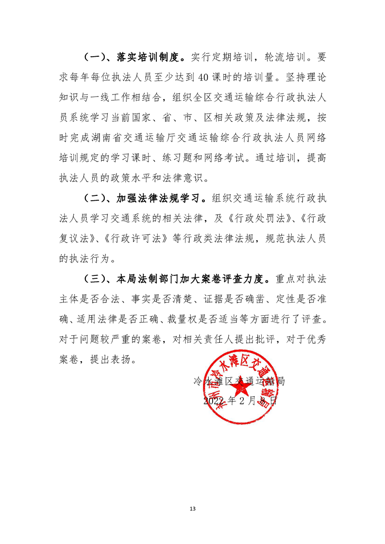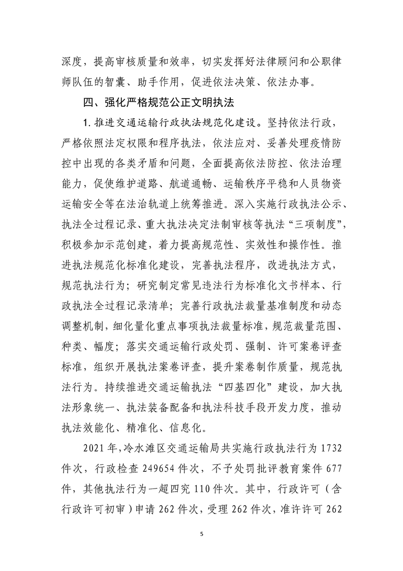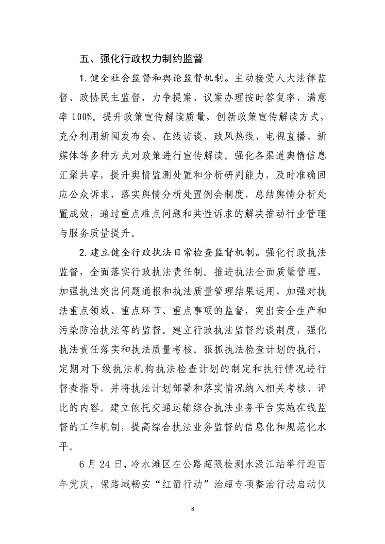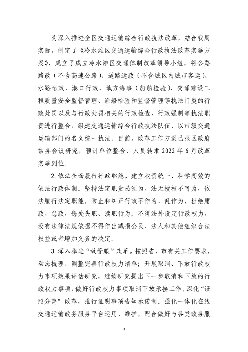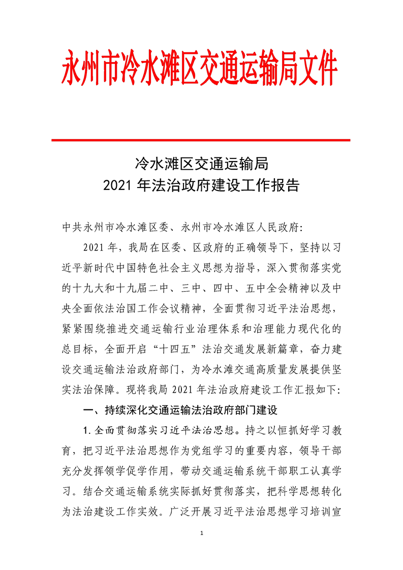 冷水滩区交通运输局2021年法治政府建设工作报告