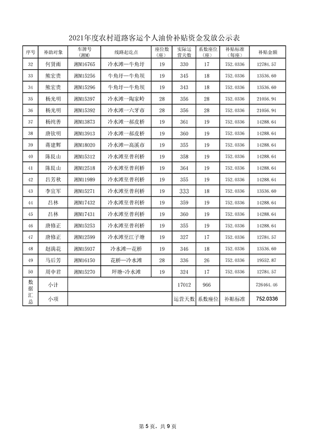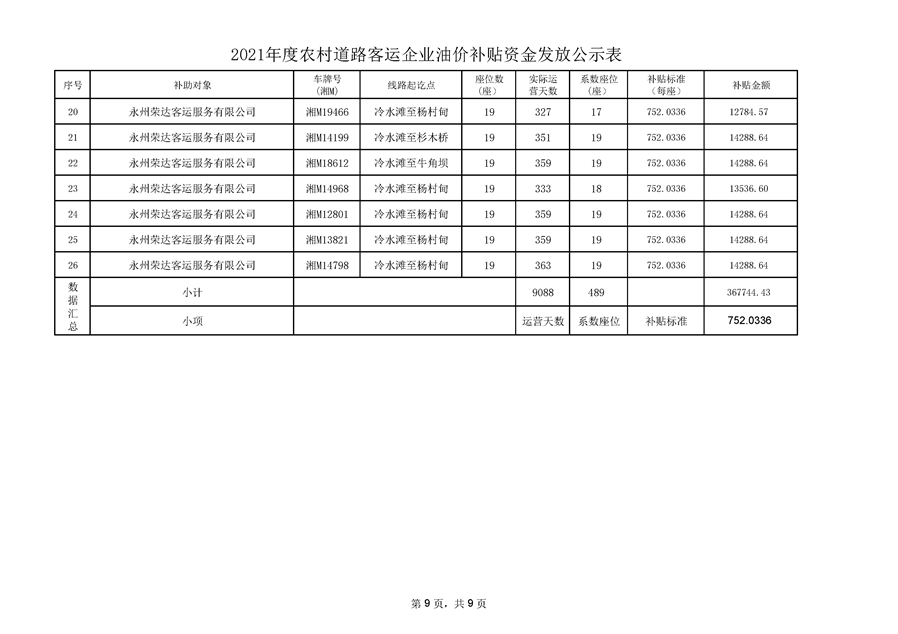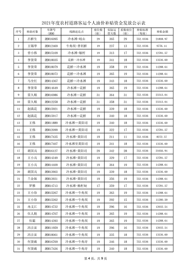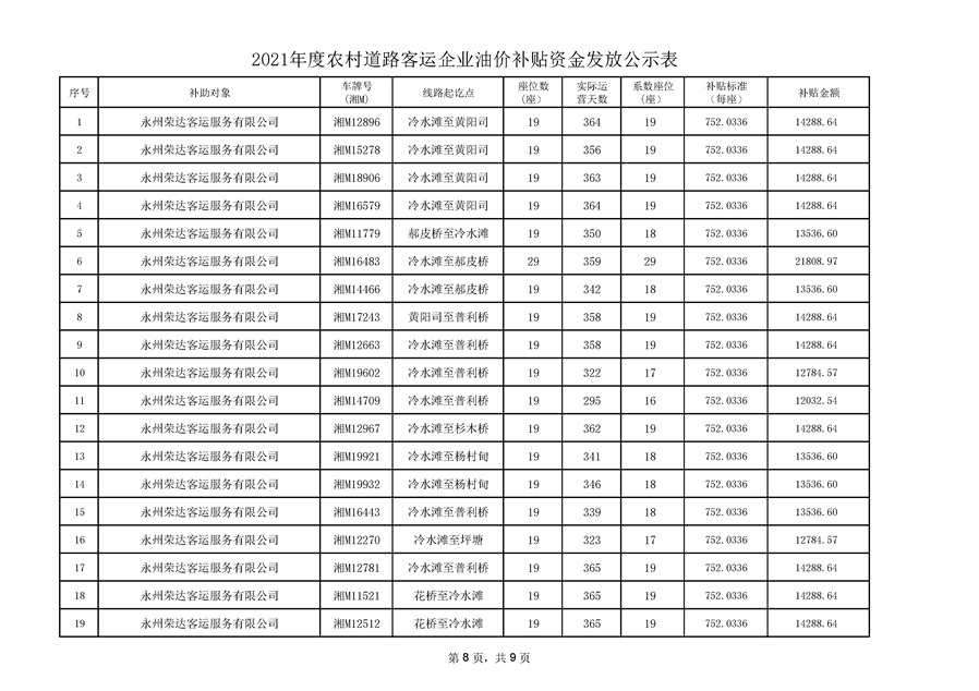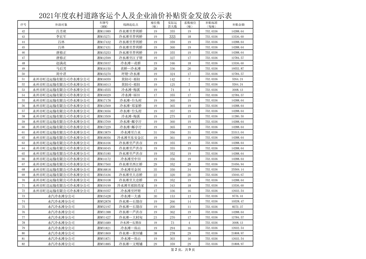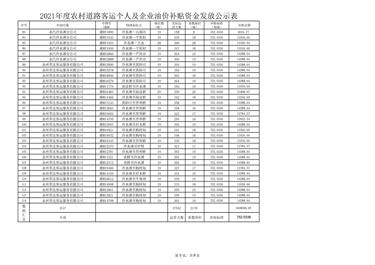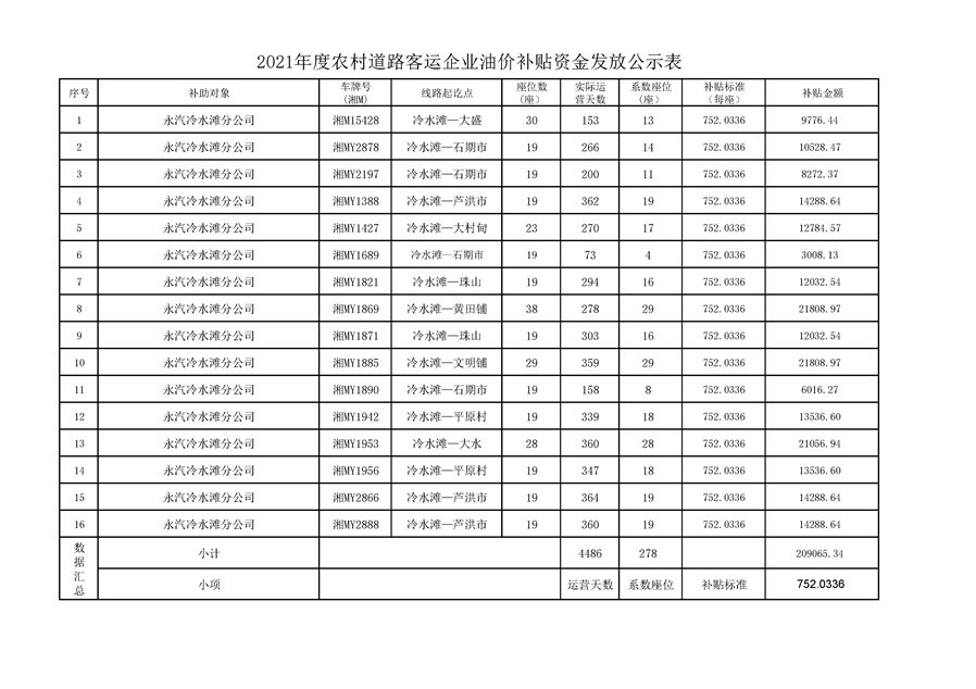2021年度农村道路客运个人及企业油价补贴资金发放公示