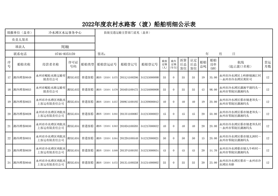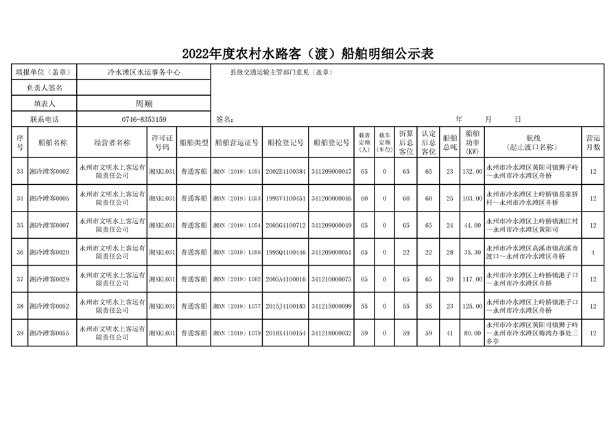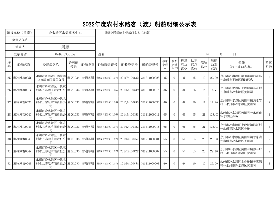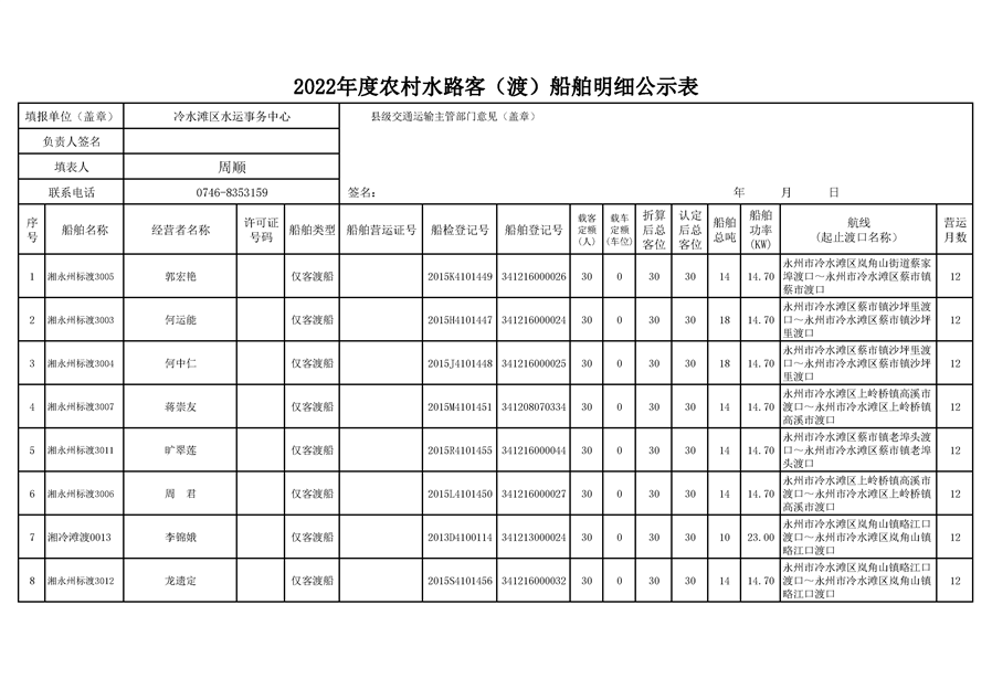 2022年度农村水路客(渡)船舶明细公示表