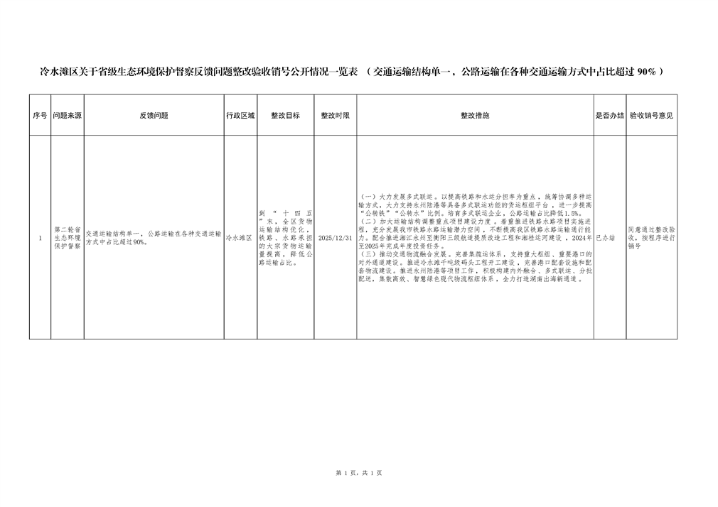 冷水滩区关于省级生态环境保护督察反馈问题整改验收销号公开情况一览表