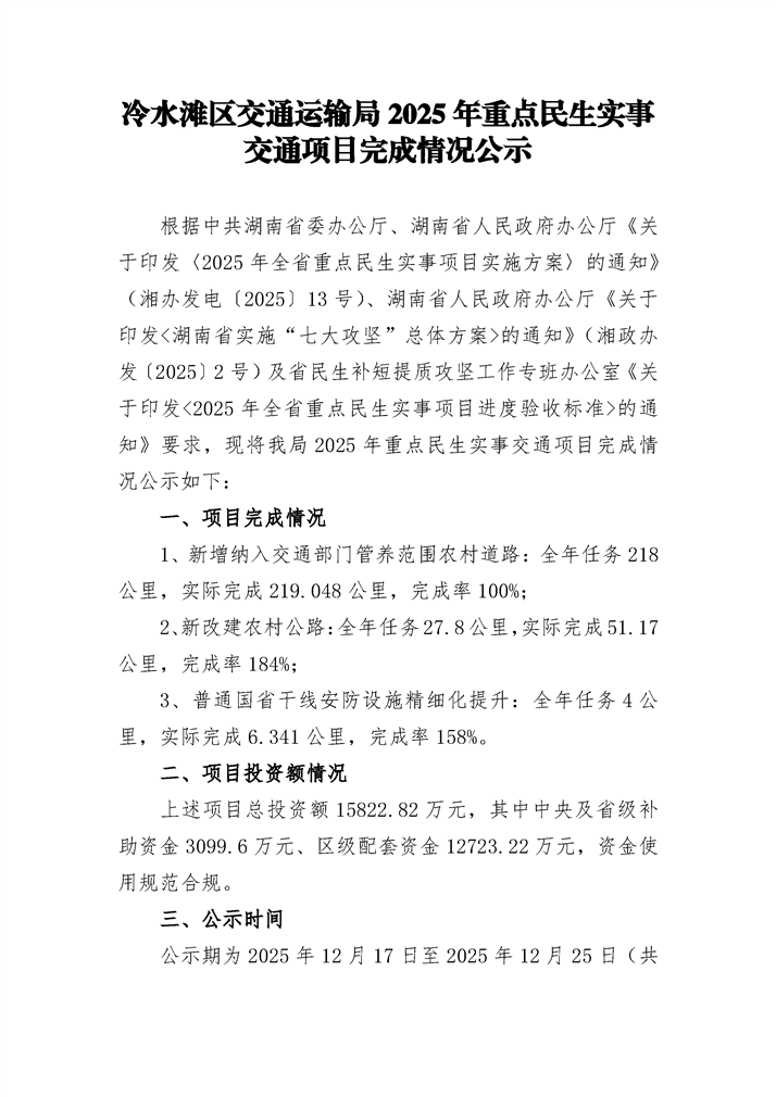 冷水滩区交通运输局2025年重点民生实事交通项目完成情况公示