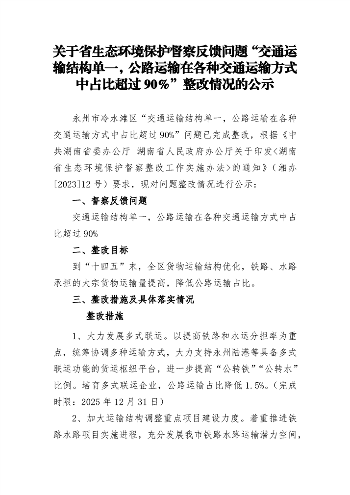 名称: 冷水滩区关于省级生态环境保护督察反馈问题整改情况的公示
