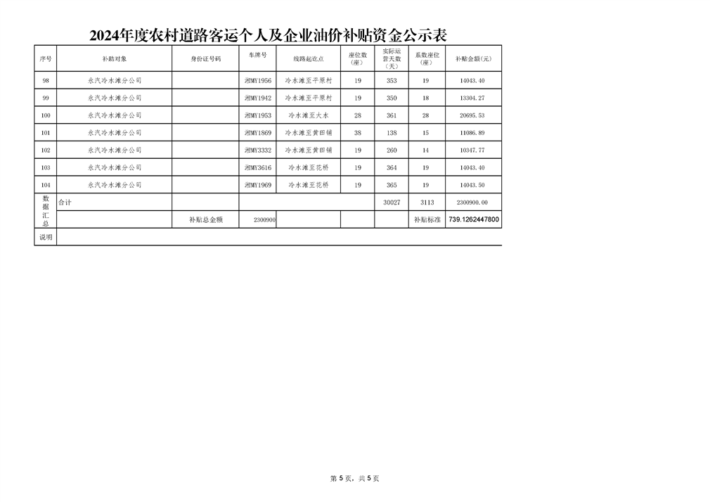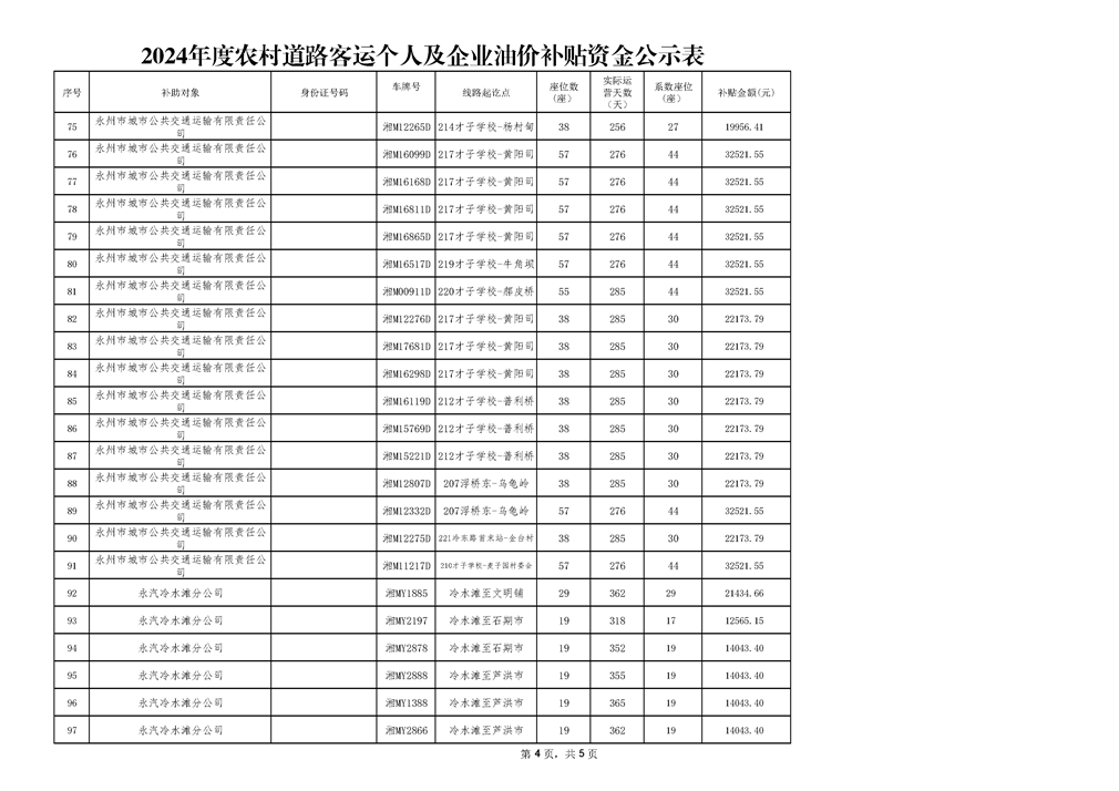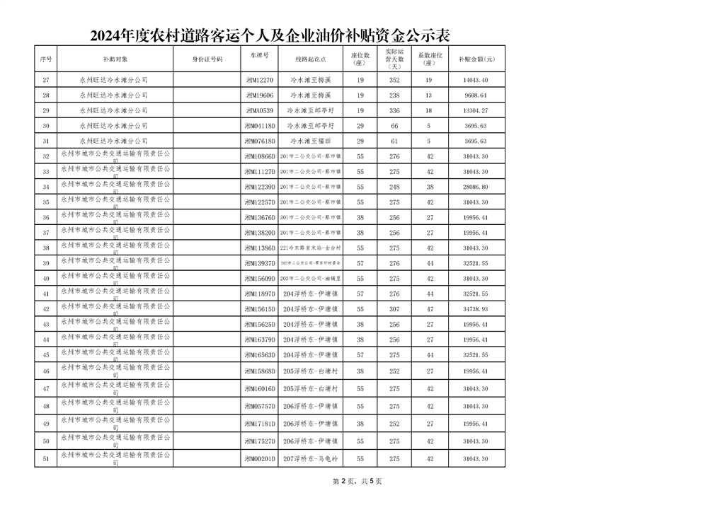 2024年度农村道路客运个人及企业油价补贴资金公示表