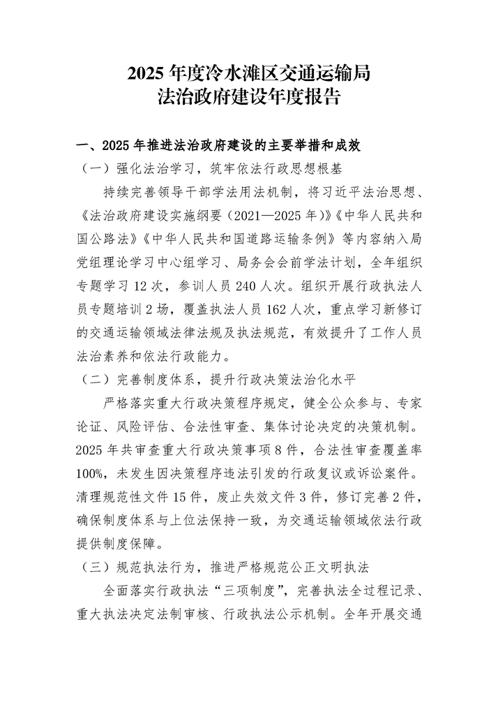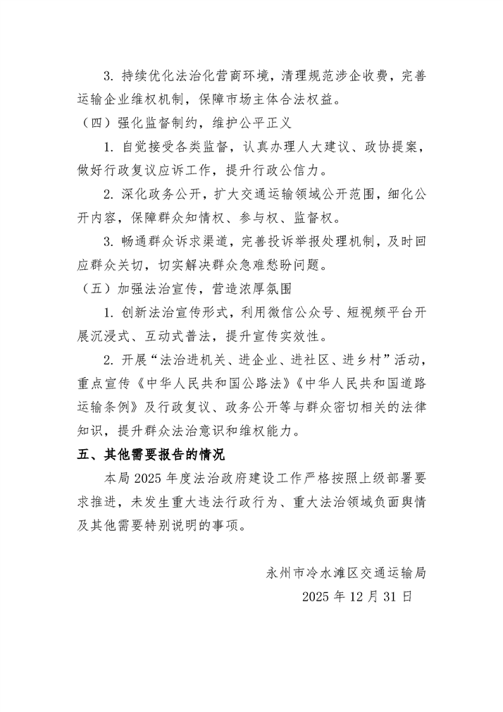 2025年度冷水滩区交通运输局法治政府建设年度报告