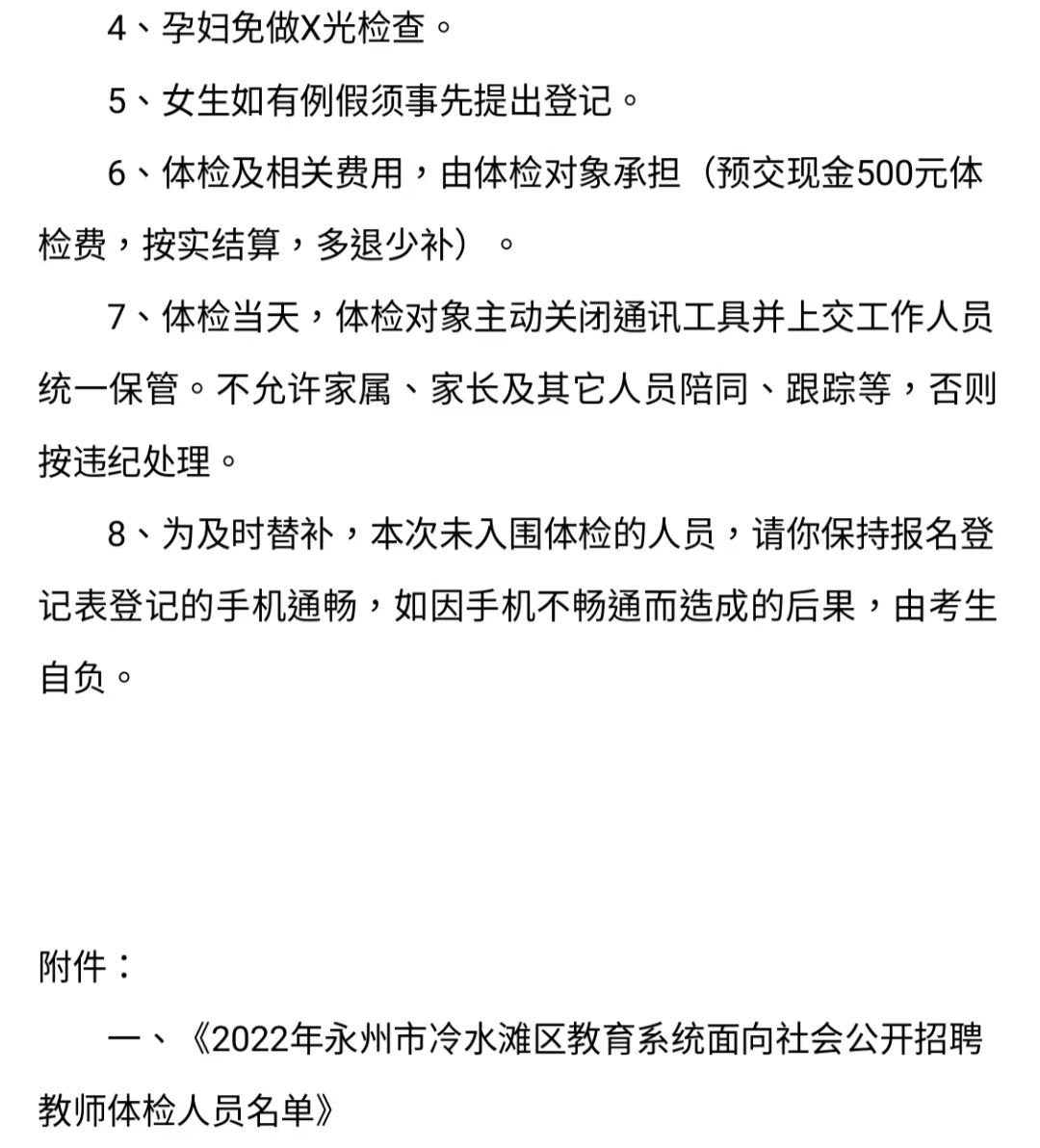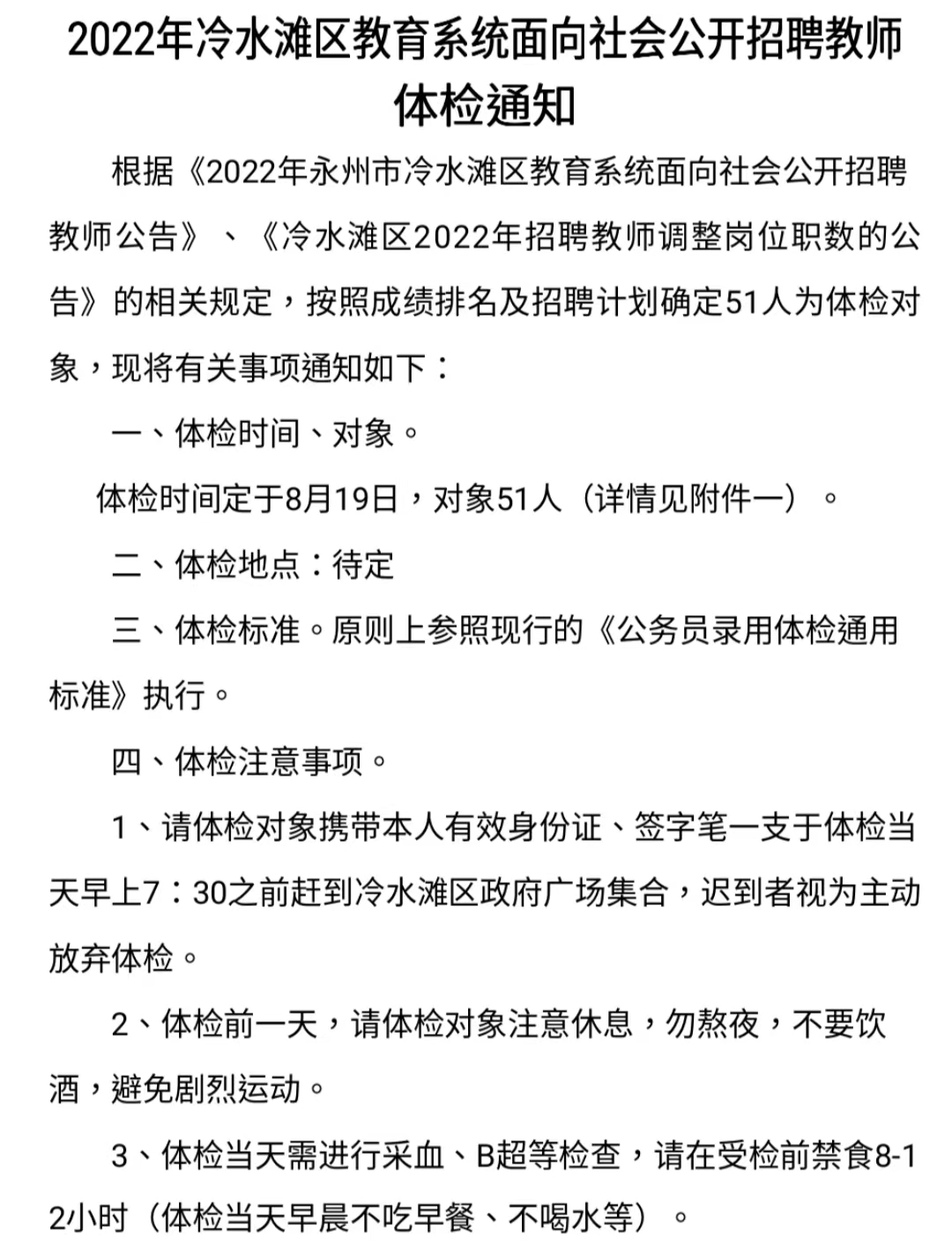 2022年冷水滩区教育系统面向社会公开招聘教师体检通知