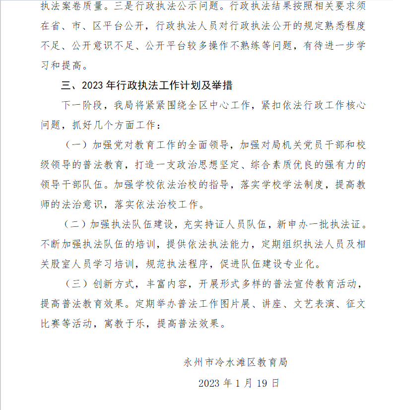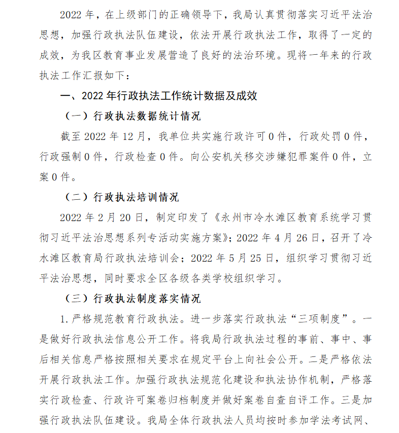 2022年冷水滩区教育局行政执法工作报告