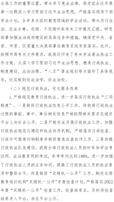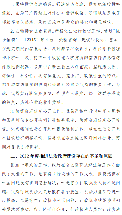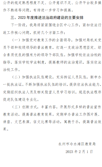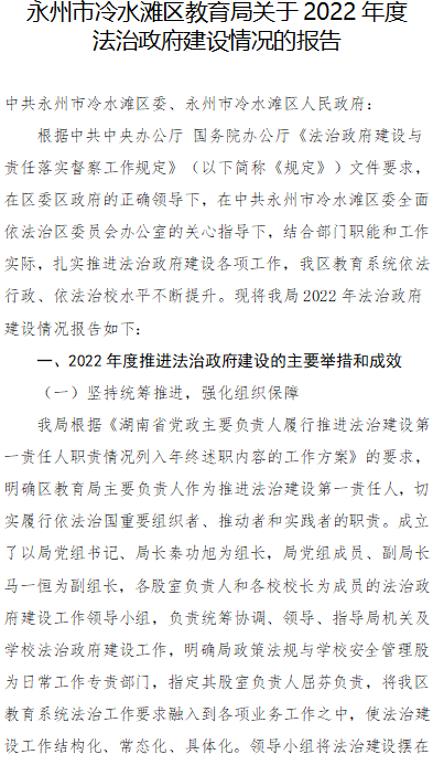 永州市冷水滩区教育局关于2022年度法治政府建设情况的报告