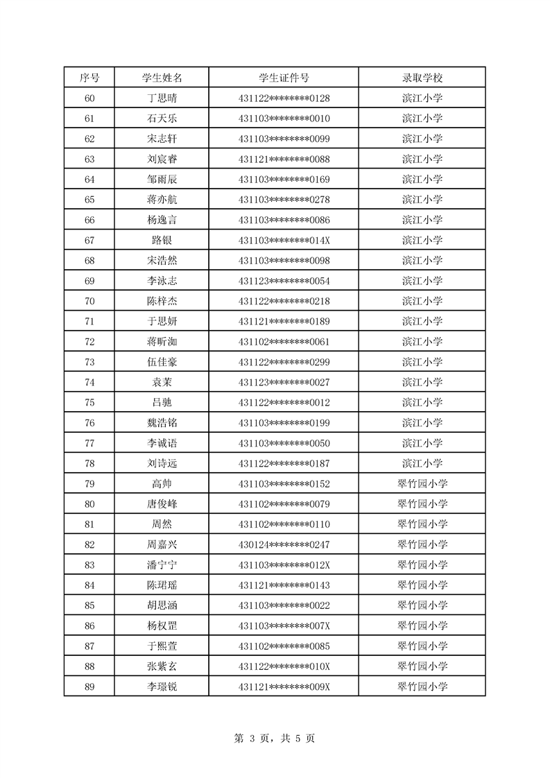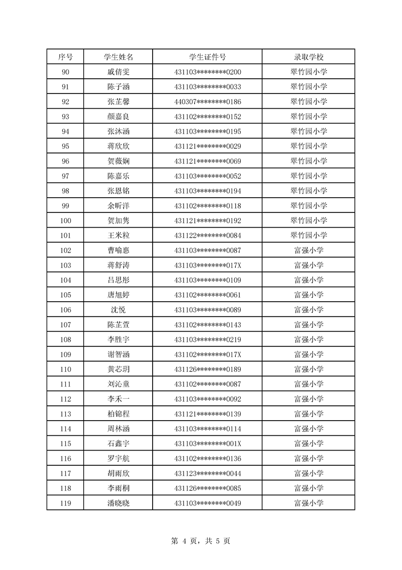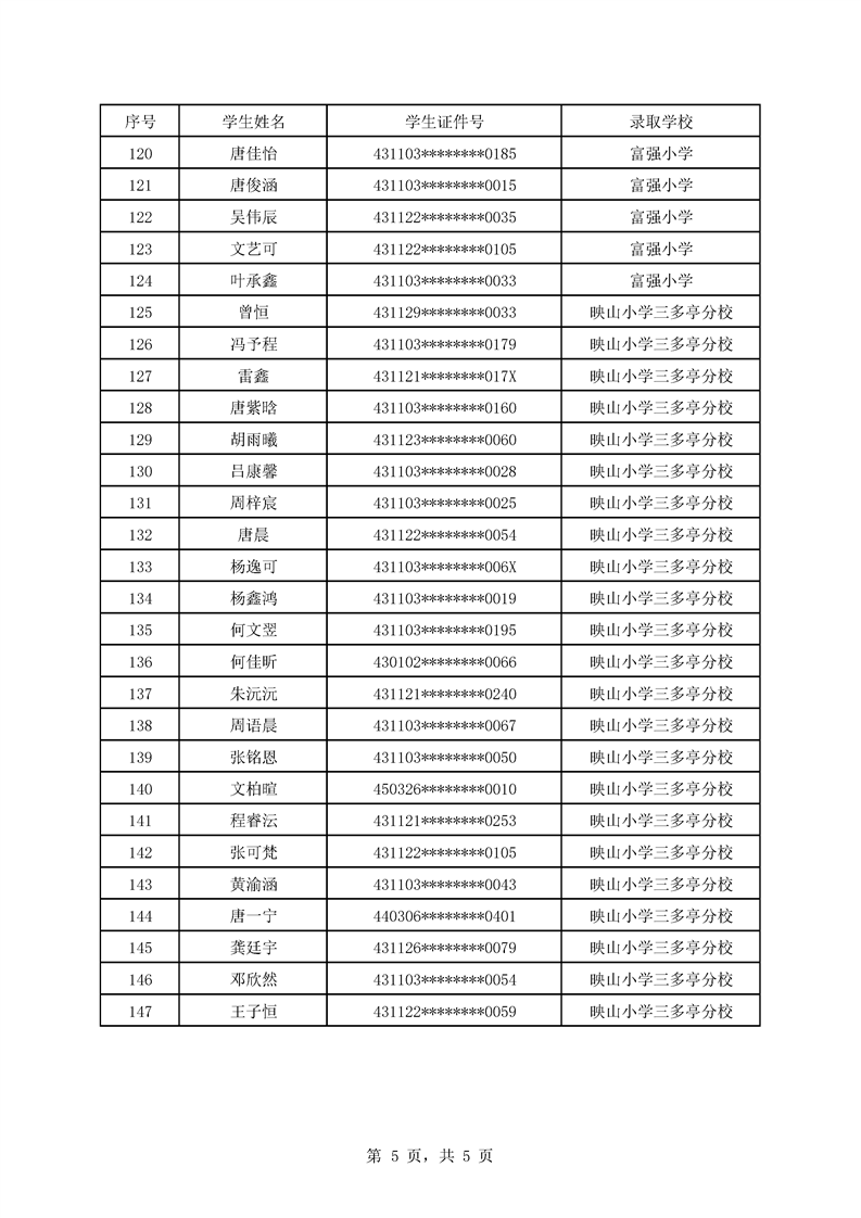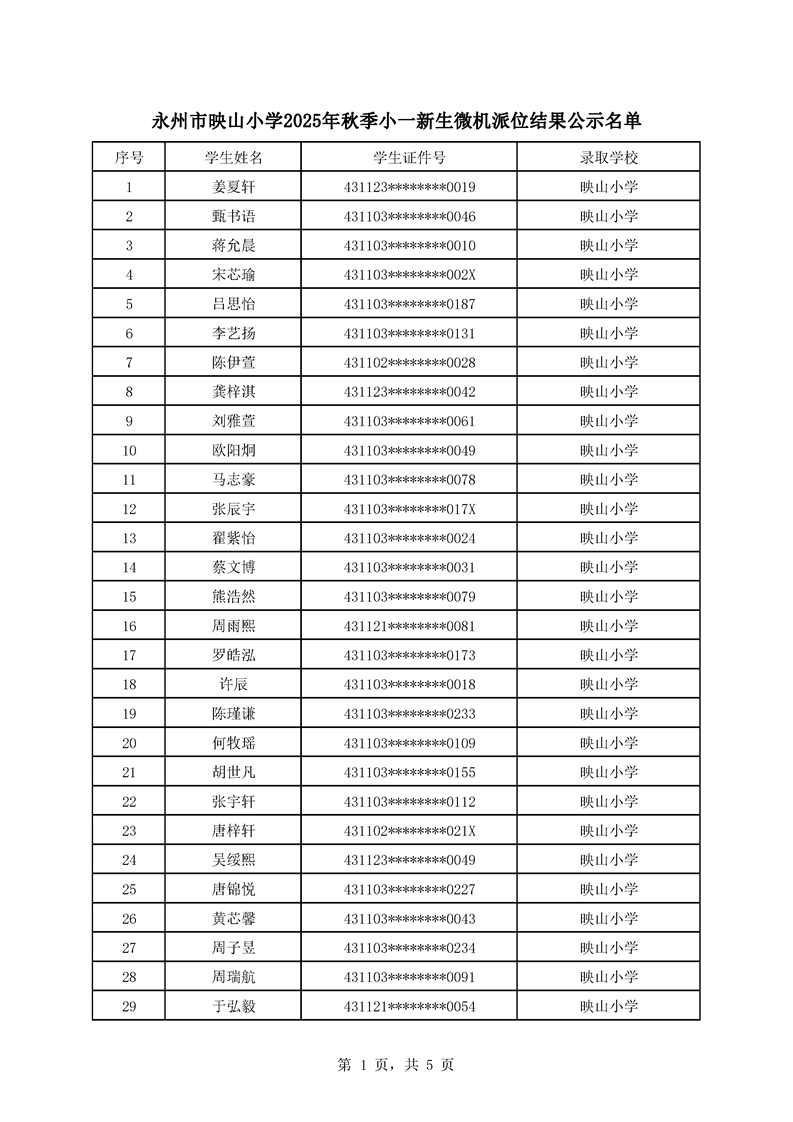 永州市映山小学2025年秋季小一新生微机派位结果公示名单