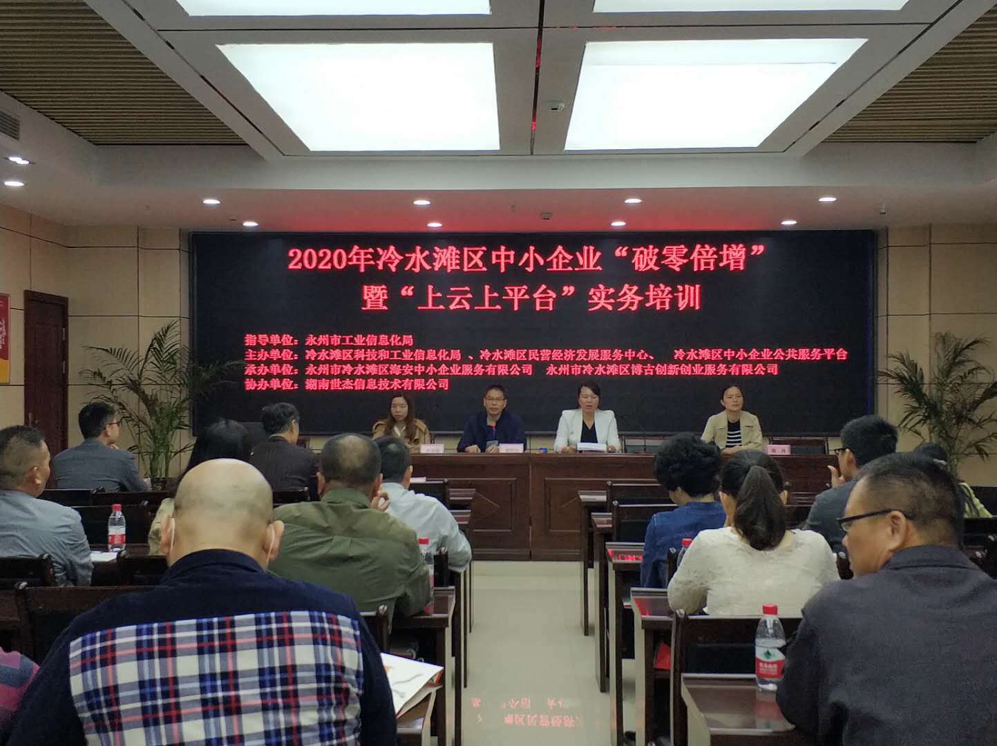 10月13日上午,2020年冷水滩区中小企业“破零倍增”暨“上云上平台”实务培训活动在冷水滩区中小企业公共服务平台二楼会议室成功举办。活动由永州市科技和工业信息化局指导,冷水滩区科技和工业信息化局、冷水滩区中小企业公共服务平台主办,冷水滩区海安中小企业服务有限公司承办。
