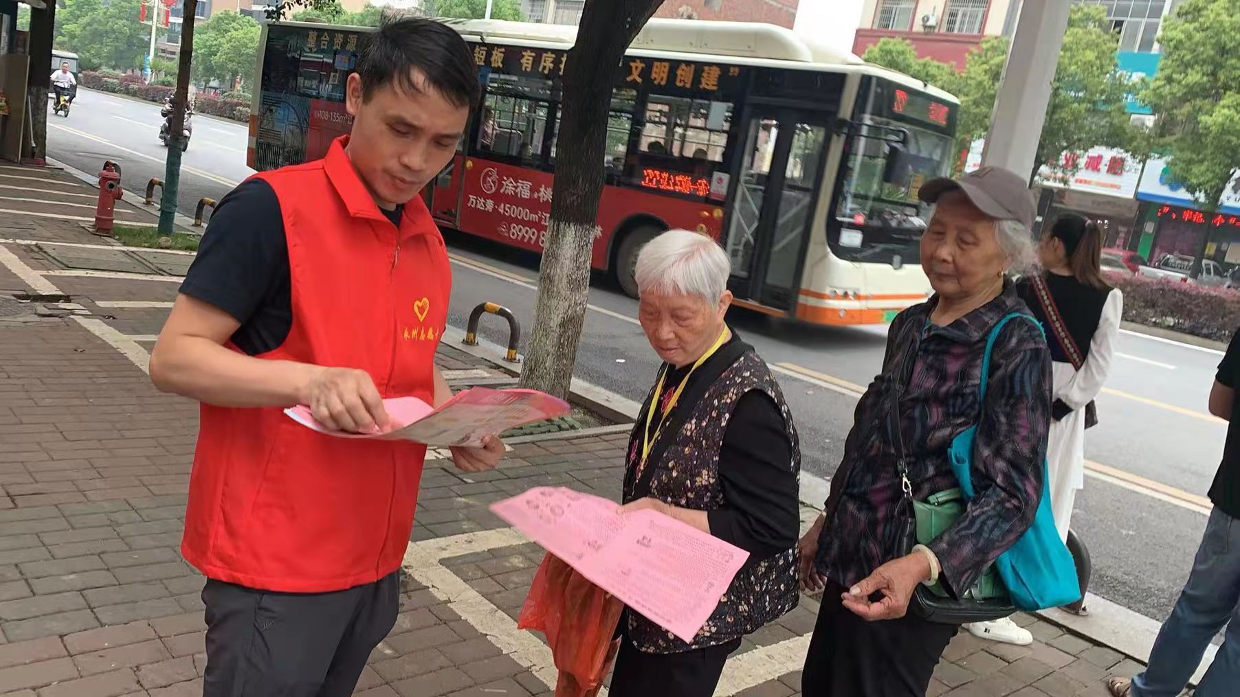 “您好,接种新冠疫苗是常态化疫情防控期间预防新冠肺炎传染最有效的手段。如果您有接种意愿,可以到湖广医院、天鸿医院、喜尔顿酒店、市中心医院冷水滩区、市中医院五个接种点免费接种。”5月7日一早,区科工信局组织志愿者深入文昌阁社区开展新冠疫苗接种宣传活动。
