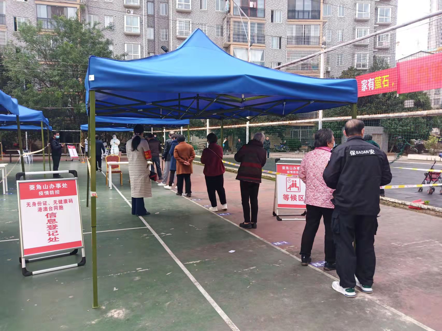 演练现场按照规定设置了采集区、登记区、缓冲区、临时隔离区和特殊人群休息区等区域。舜德花园小区居民在现场志愿者的引导下,佩戴口罩,持身份证,按照一米线提示有序排队,测量体温,现场进行身份验证、按顺序登记群众基本信息,填写采样信息表,进行核酸采样等流程。
