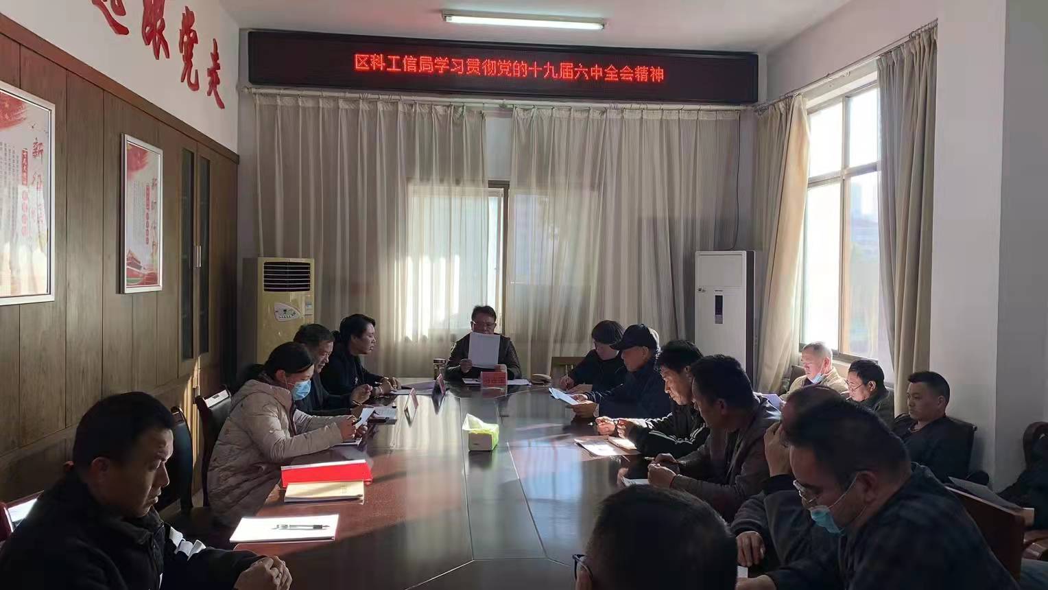 近日,区科工信局组织召开党组理论中心组集中学习会议,深入学习贯彻党的十九届六中全会精神。会议由局党组书记、局长冯吉宝主持。