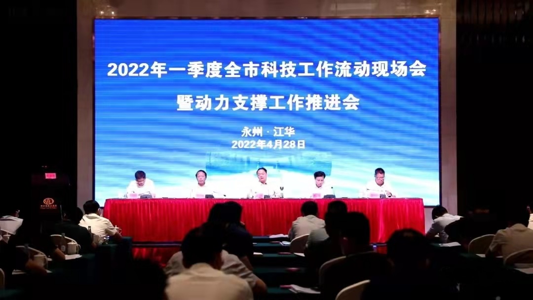 4月28日,2022年一季度全市科技工作流动现场会暨动力支撑工作推进会在江华召开,副市长肖扬出席会议并讲话。