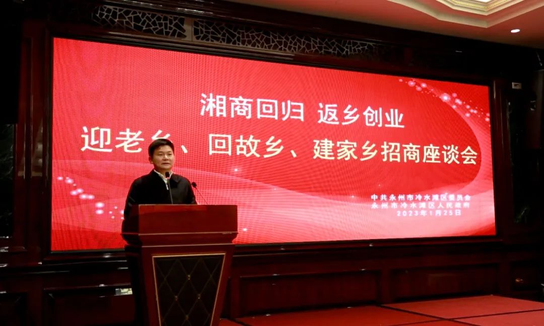 1月25日上午,冷水滩区组织召开“湘商回归·返乡创业”暨“迎老乡、回故乡、建家乡”主题活动座谈会,邀请了多名冷水滩籍在外优秀人士和湘商企业家参加。区委书记秦志军出席并讲话,区领导黄燕玲、艾祥柏、蒋欧林、张文风、邓传文、王付荣、齐晓慧、周显平、汤丽参加。 座谈会上,张文风介绍了冷水滩区2022年以来经济社会发展变化,湘商代表分享了个人创业和工作经历,并结合自身实际提出了建议。大家欢聚一堂、共叙乡情、共商家乡发展大计,活动现场热闹非凡。 秦志军向长期以来关心支持家乡发展和建设的冷水滩籍在外优秀人士、返乡创业人士表示衷心的感谢。秦志军表示,近年来,冷水滩区贯彻落实中央、省、市的各项决策部署,高效统筹疫情防控和经济社会发展,致力于建机制、优环境、强服务,扎实推进产业发展、项目建设、营商环境、基础设施建设等工作,希望广大优秀人士、企业家们加快自身发展的同时,能够常回家走一走、看一看,亲身感受家乡的变化,一如既往地关心和支持家乡建设,发挥好家乡区位优势、交通优势、经济资源,积极回乡兴业创业、积极为家乡牵线搭桥、积极建言献策,为冷水滩经济社会高质量发展凝聚新动能。冷水滩区也将继续把家乡发展好、建设好、治理好,把大家服务好,继续加快产业发展,深化人才建设和教育发展,用心、用情、用力推进城市基础设施建设、乡村振兴和创文创卫等工作,积极做好要素保障服务,持续优化营商环境,多向发力,持续赋能,为广大优秀人士提供施展才华、实现抱负的广阔舞台。