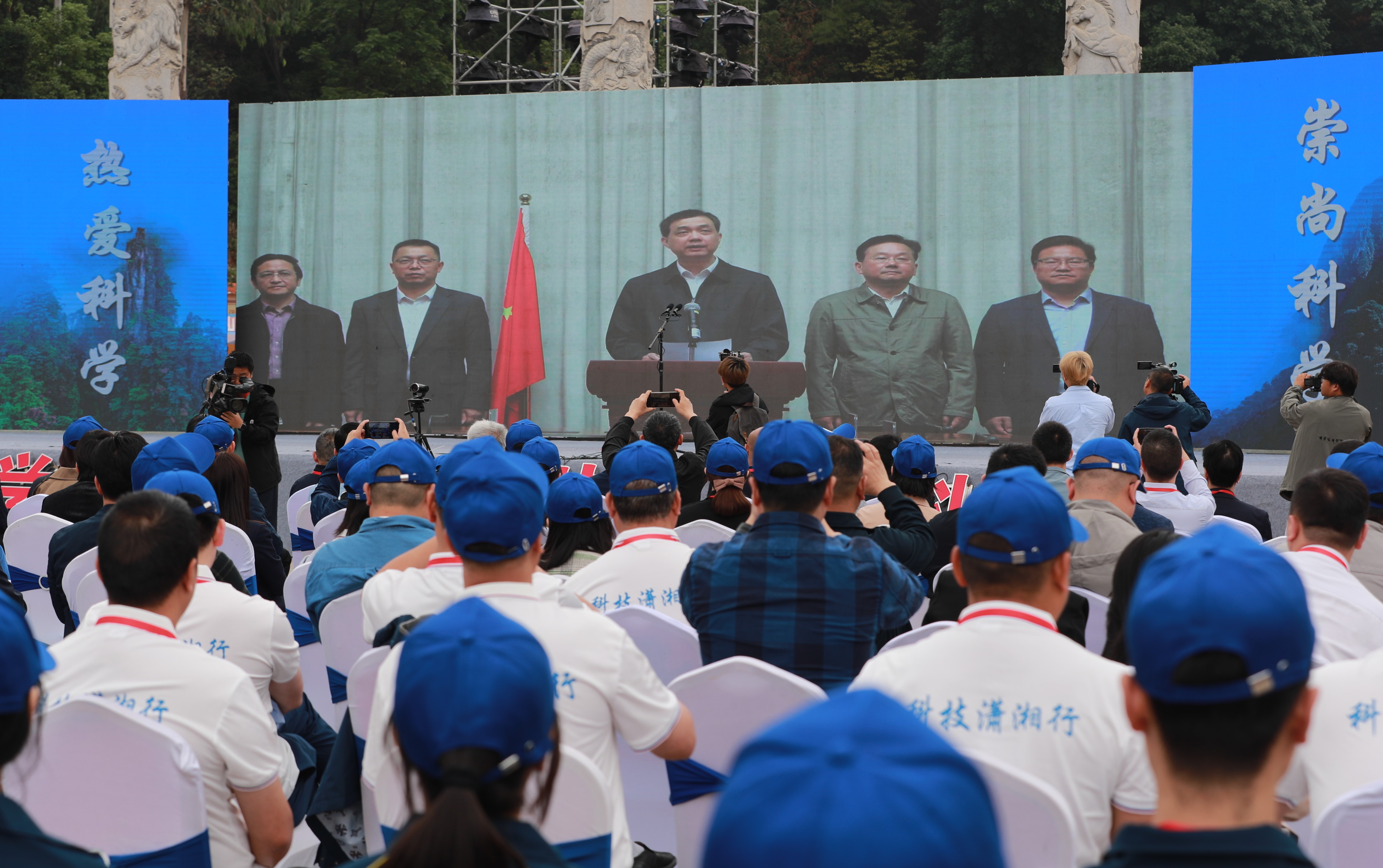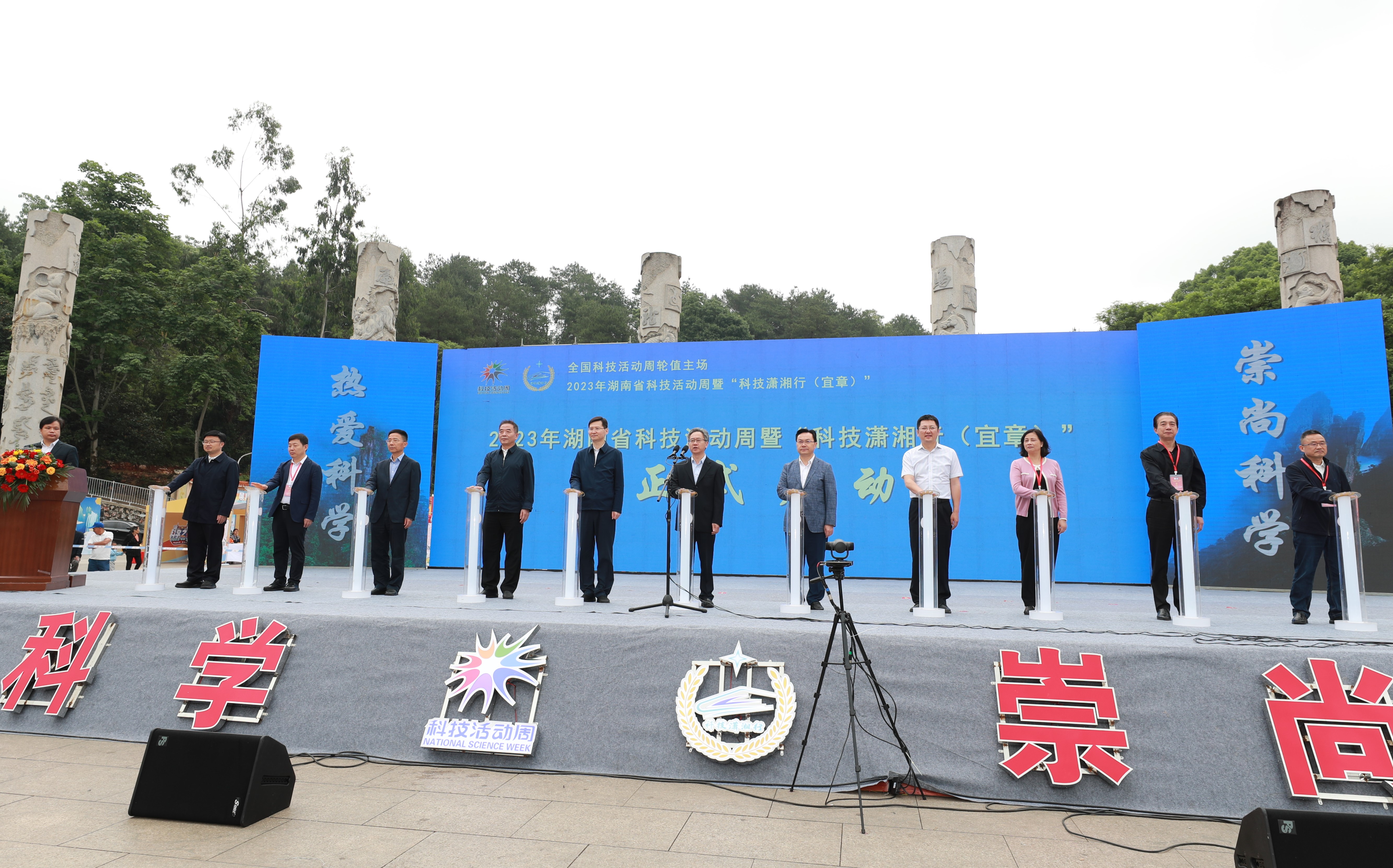 科技创新,潮涌潇湘。5月23日上午,2023年湖南省科技活动周暨科技潇湘行启动式在郴州宜章中夏广场隆重举行。副省长周海兵通过视频连线形式出席并致辞,省政府副秘书长周义祥,省科技厅党组书记、厅长李志坚,中国工程院院士、湖南农业大学教授刘仲华,郴州市委副书记、市长阚保勇等出席,省科技厅党组成员、副厅长周建元主持启动仪式。科技部人才与科普司,湖南省科技厅、中共湖南省委宣传部、湖南省科协、湖南省教育厅等省级相关部门领导,部分县市区领导,省内外专家代表,青少年学生及宜章市民等千余名代表参加启动仪式。