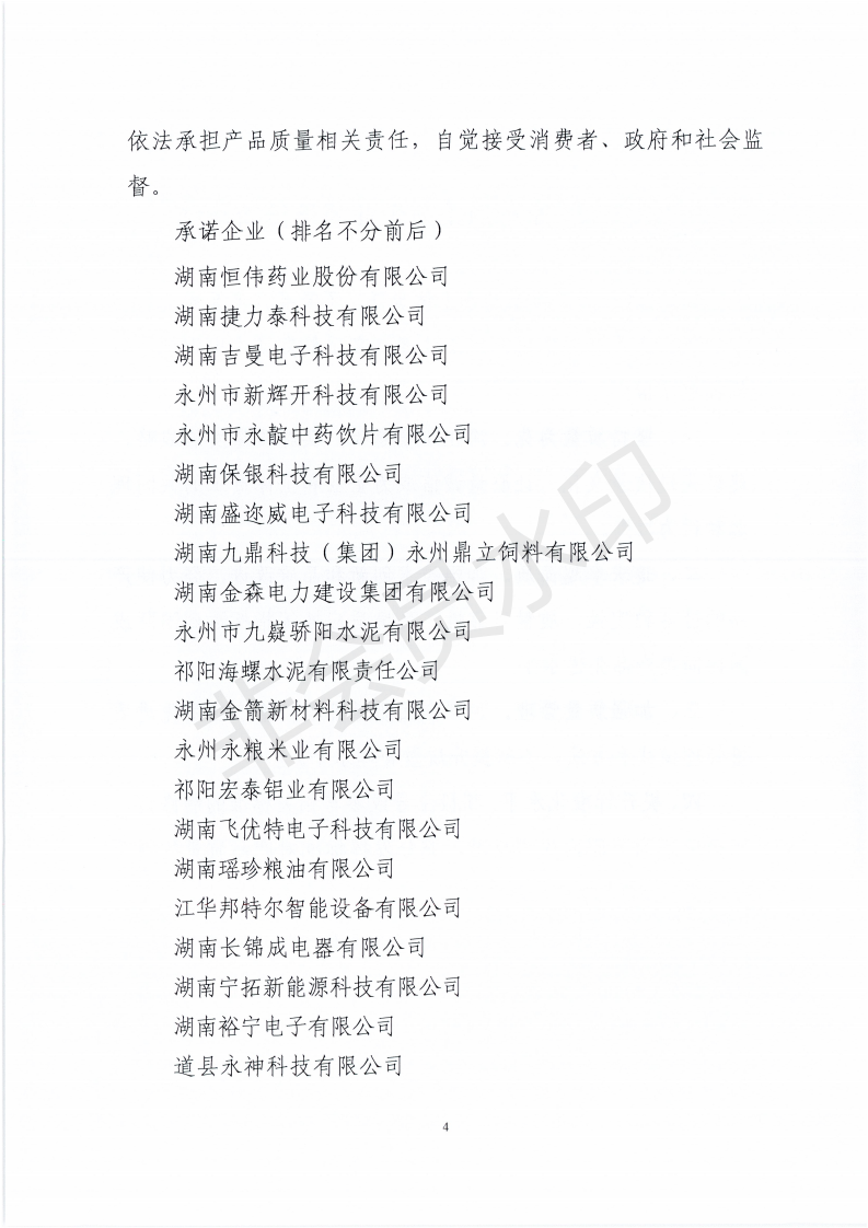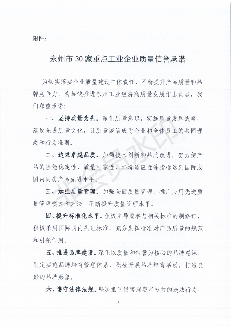 希望做出承诺的企业认真履行承诺,自觉接受消费者、政府和社会的监督,全面加强质量管理和技术创新,整体提升永州工业质量水平,为推进我市工业经济高质量发展做出更大的贡献。