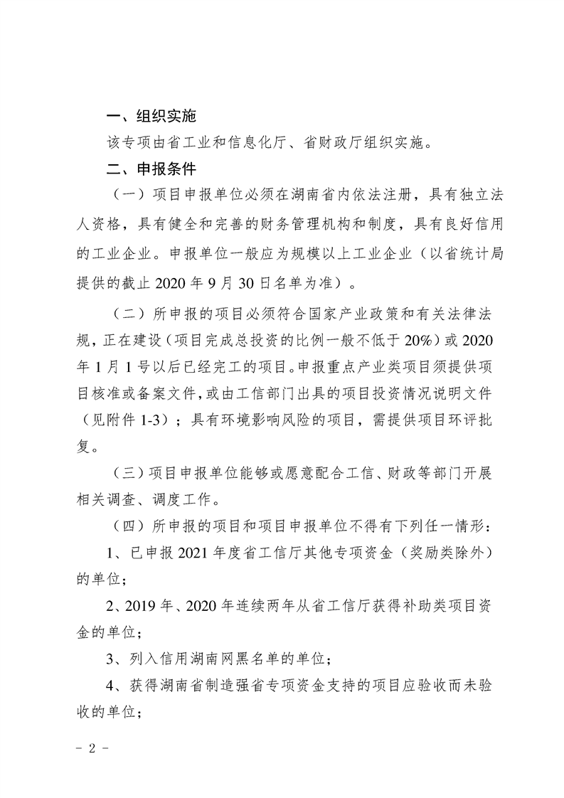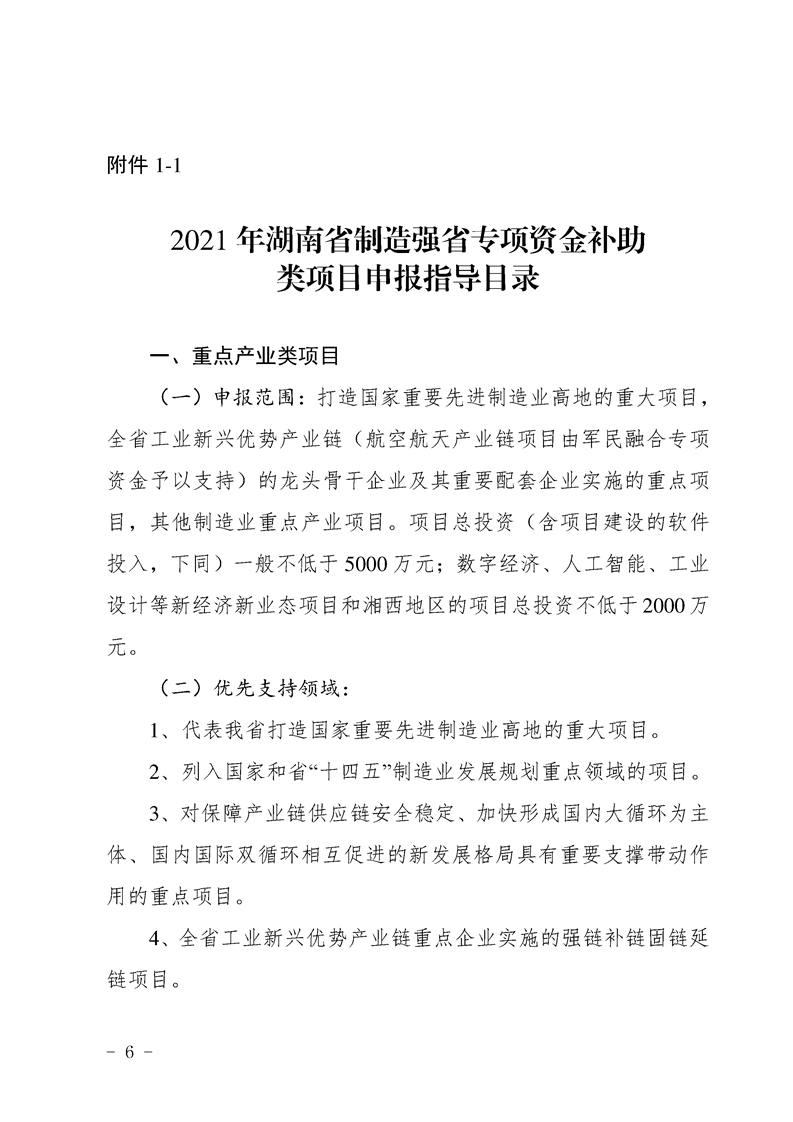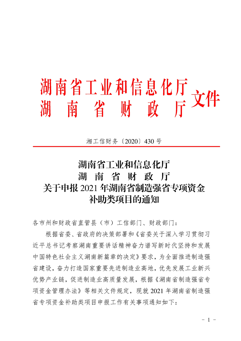 关于申报2021年湖南省制造强省专项资金补助类项目的通知
