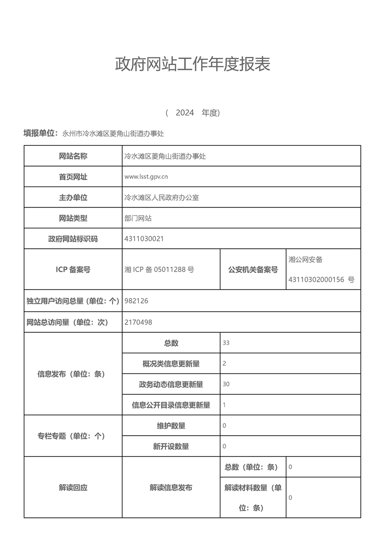 冷水滩区菱角山街道2024年度政府网站工作年度报表