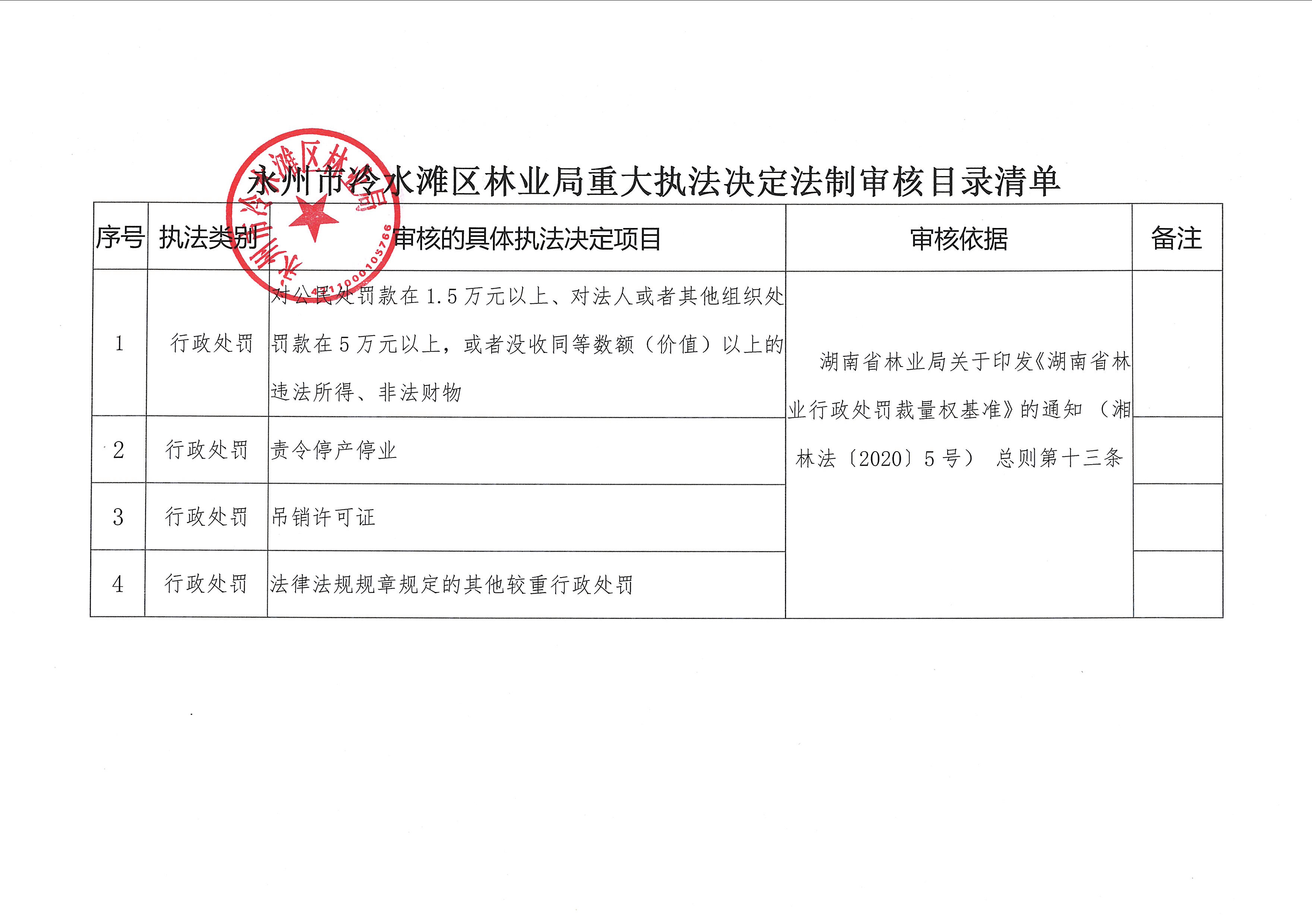 永州市冷水滩区林业局重大执法决定法制审核目录清单