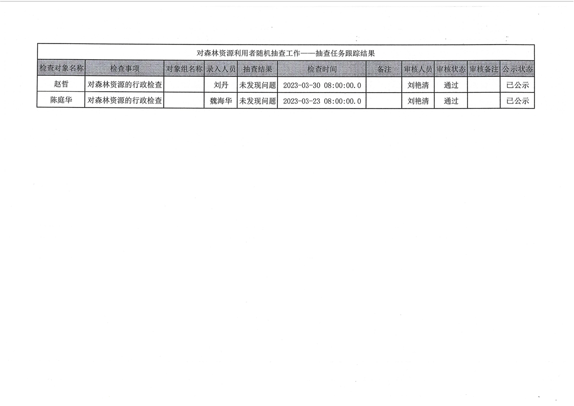 对森林资源利用者随机抽查工作——抽查任务跟踪结果