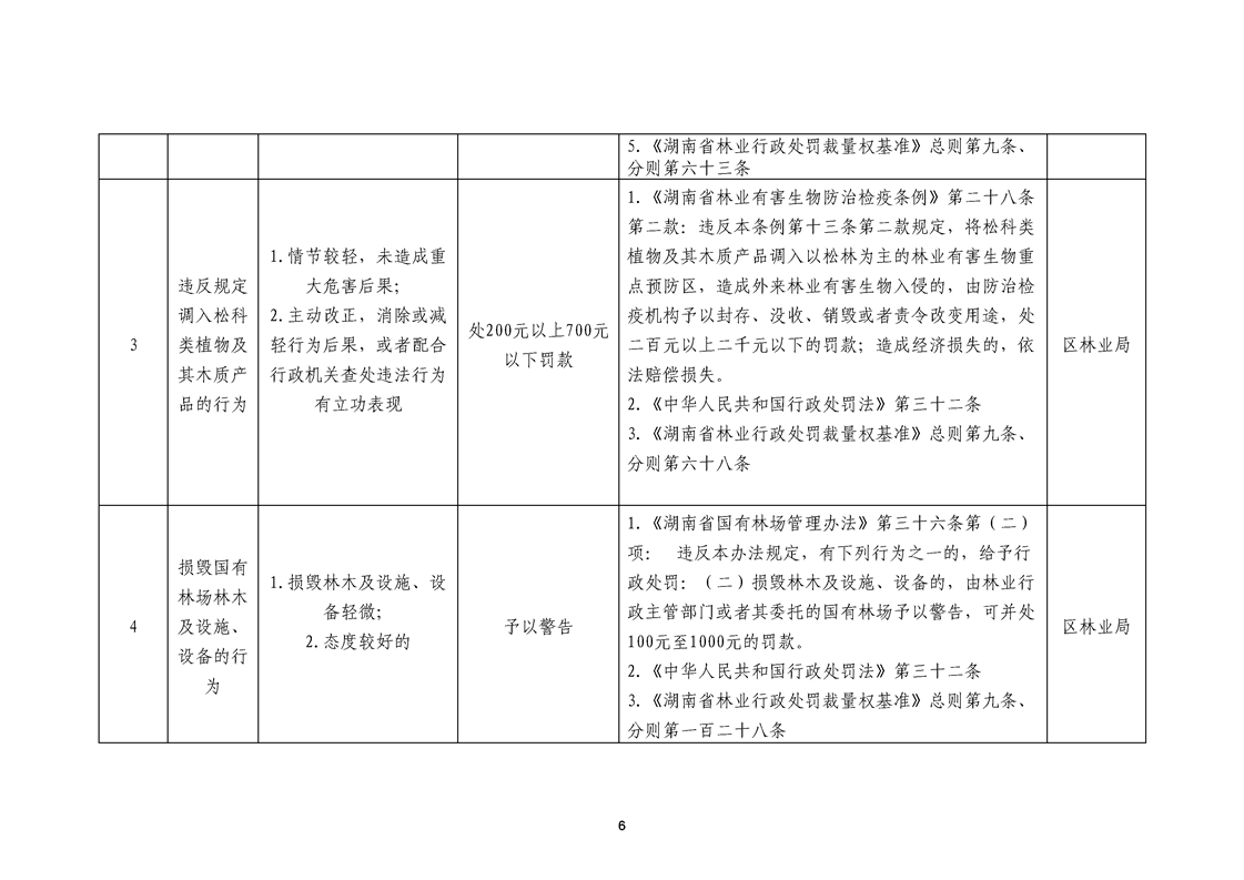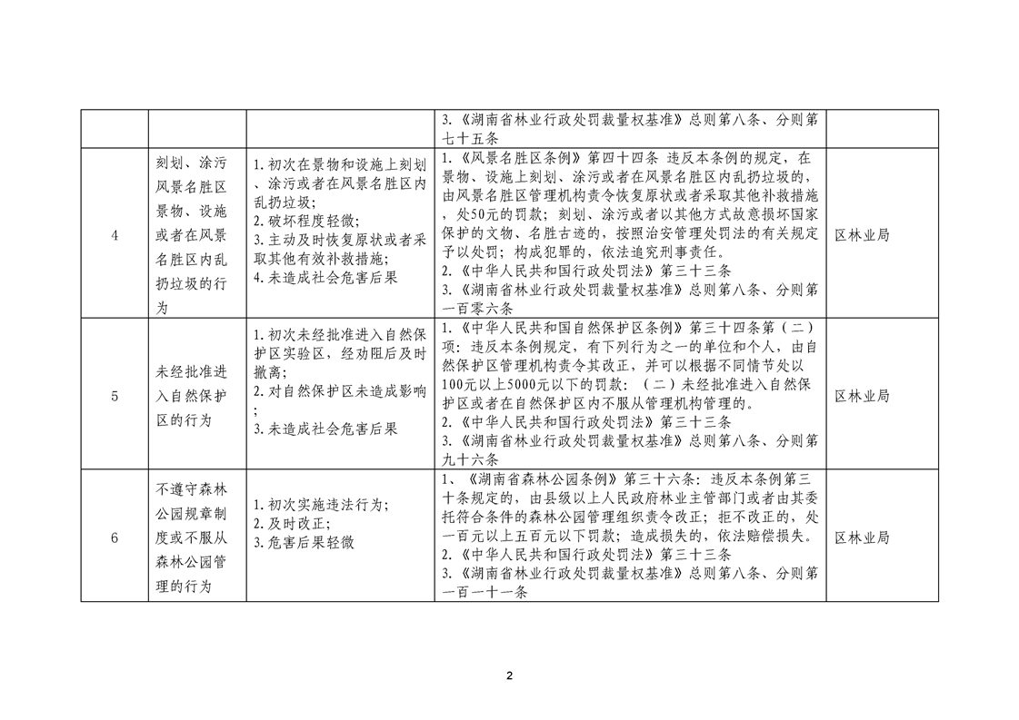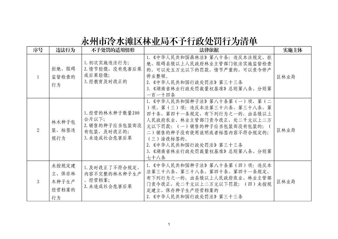 名称: 永州市冷水滩区林业局不予行政处罚行为清单和市场主体一般违法行为从轻减轻林业行政处罚清单
