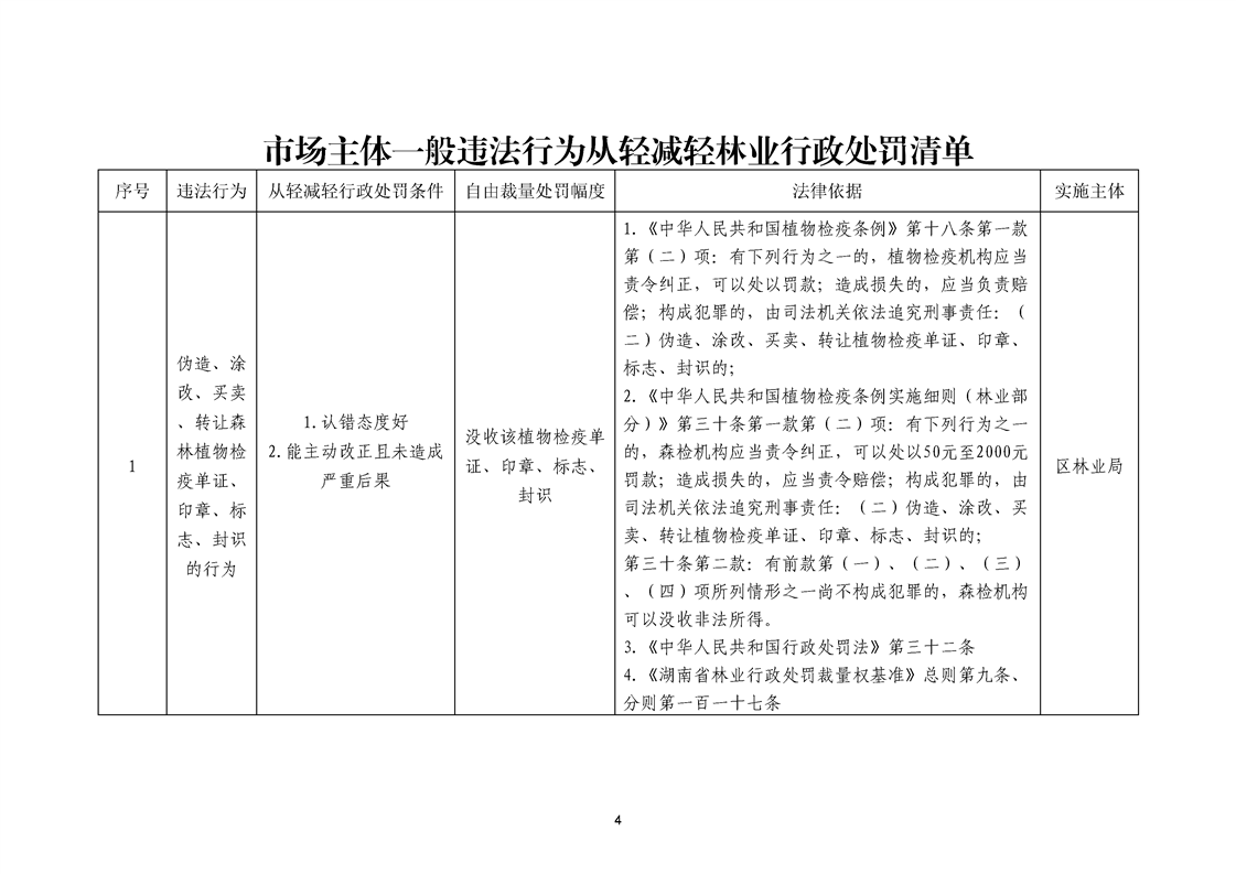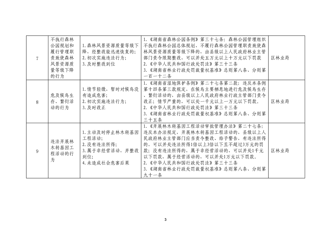 永州市冷水滩区林业局不予行政处罚行为清单和市场主体一般违法行为从轻减轻林业行政处罚清单