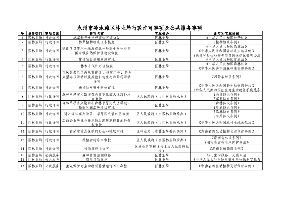 永州市冷水滩区林业局行政许可事项及公共服务事项