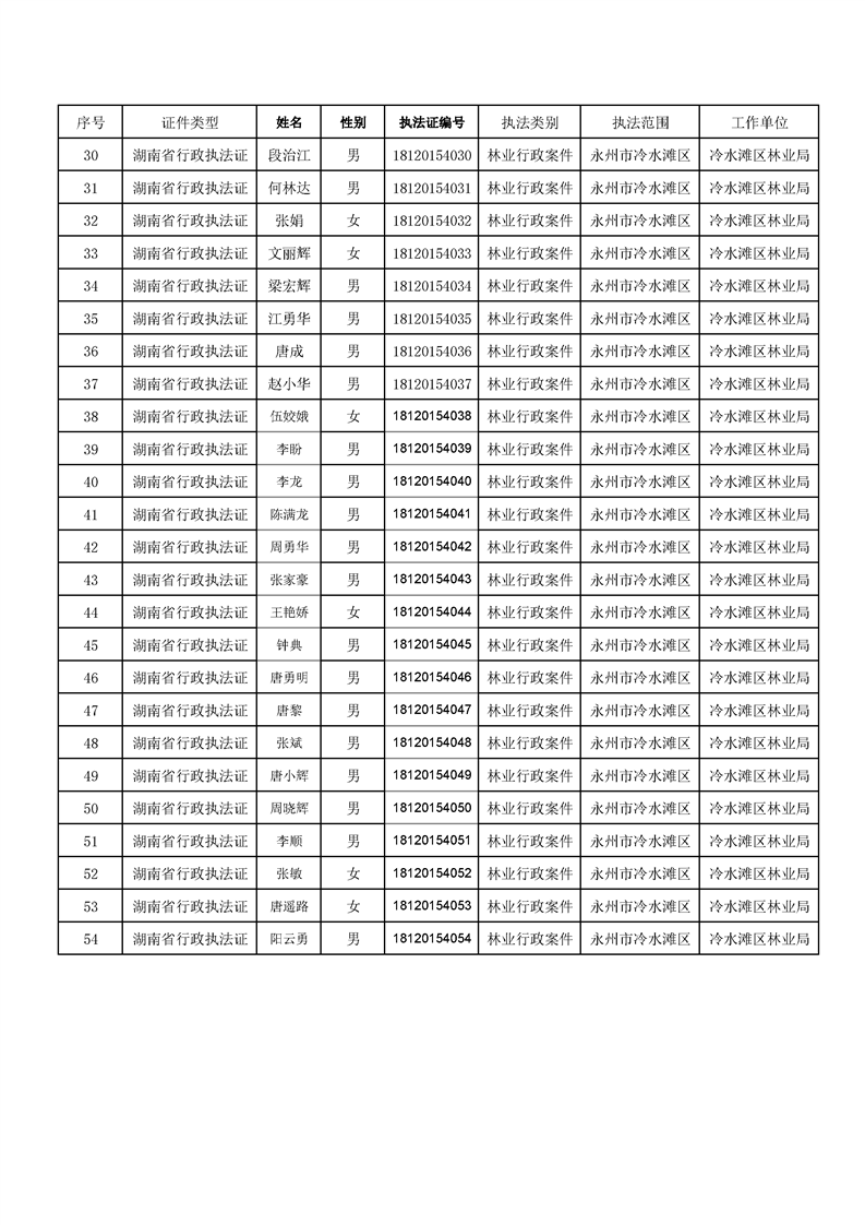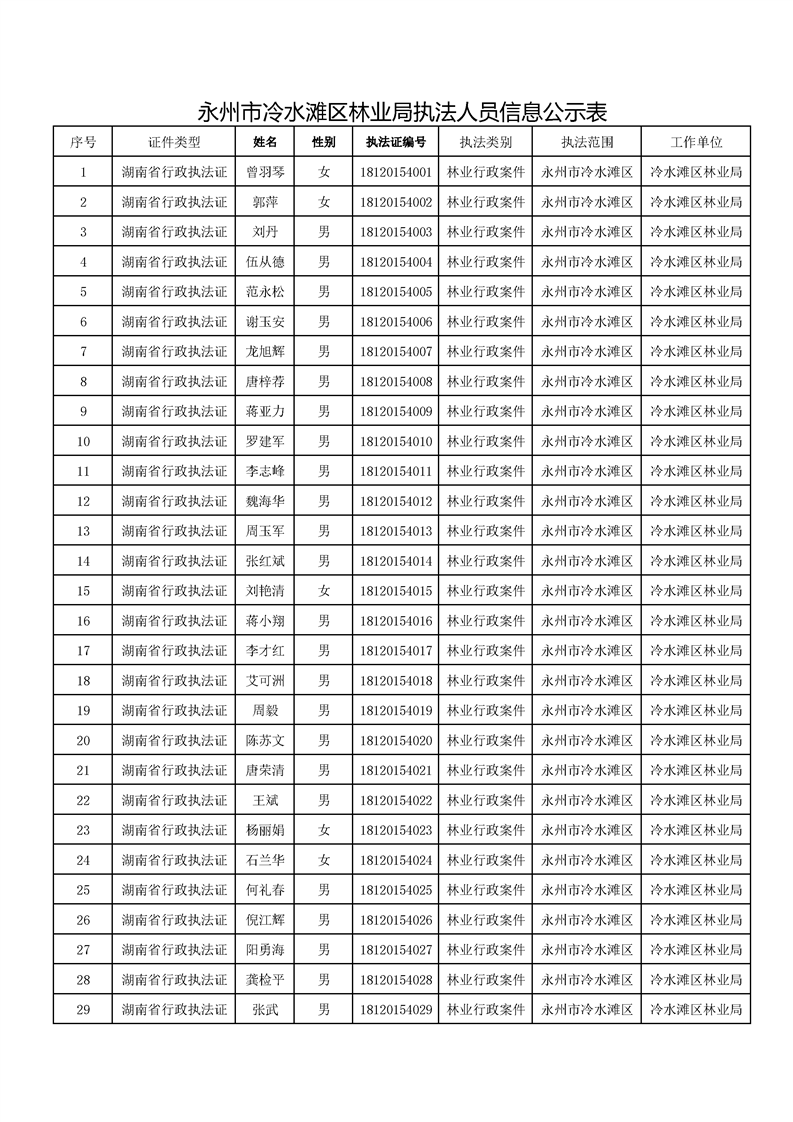永州市冷水滩区林业局执法人员信息公示表