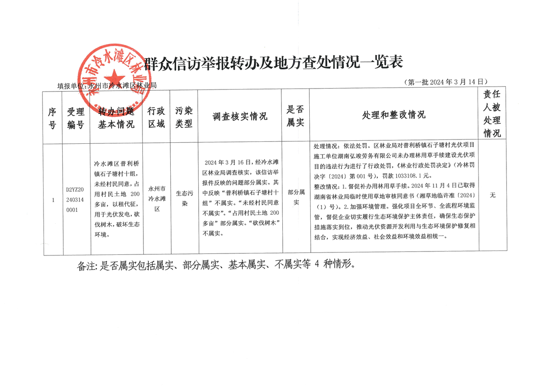 群众信访举报转办及地方查处情况一览表(第一批)