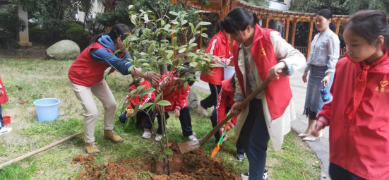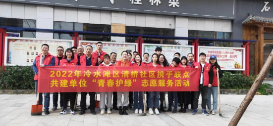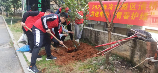 3月12日上午,冷水滩区梅湾街道清桥社区党员志愿者和网格员携手联点共建单位在滨江豪园开展“青春护绿”为主题的植树活动。