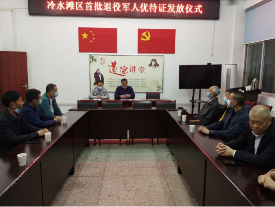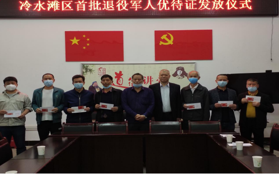 冷水滩区在梅湾街道举行了退役军人及其他优抚对象优待证首发仪式,首批8名退役军人代表领取了优待证。