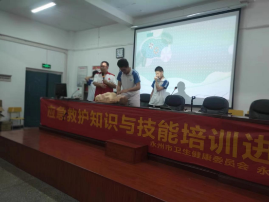 在永州市第八中学的授课现场,永州市中医院“红十字”志愿服务队用一个个鲜活的事故实例,一组组触目惊心的数据,为师生们上了一堂防溺水生命安全教育课。宣讲过程中,志愿者还采用了实操演示、情景互动等多种方式,向师生们讲解了防溺水安全教育“七不”、“两会”、“四知”以及发现溺水者如何正确施救等知识,还利用假人模型实操演示“心肺复苏”等应急救援步骤和要领,让师生亲身体验急救技能操作,掌握急救知识,真正做到学有所获、学以致用。