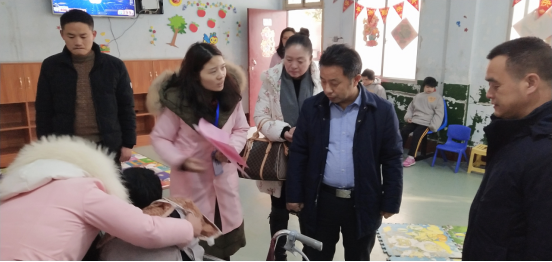 随后,桂区长来到一楼重残区娱乐室,走近一名因脑瘫导致跟腱痉挛、剪刀脚而无法自行站立行走的儿童,详细询问儿童身体状况和生活情况,了解儿童康复发展情况,嘱咐工作人员要仔细观察所有儿童的身体情况,照顾好儿童的饮食起居,做好儿童康复教育工作。最后桂区长分别代表区委、市民政局为福利院送上新春慰问金,祝福孩子们越来越好,还向辛勤坚守工作岗位的工作人员表示感谢,希望他们今后继续为孩子们提供细致入微的生活、教育、康复治疗服务。