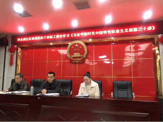 冷水滩区民政局全体干部职工集中学习《习近平新时代中国特色社会主义思想三十讲》